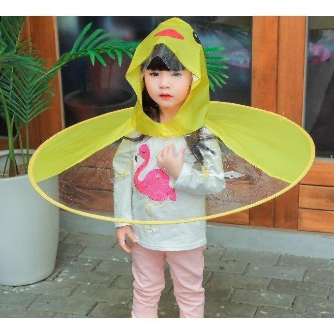 ハンズフリー傘 キッズ 子供用 帽子風傘 キャップレインコート レインハット風 ポンチョ風 雨具 レインウェア 雨合羽 雨がっぱ アヒル カエル かわ
