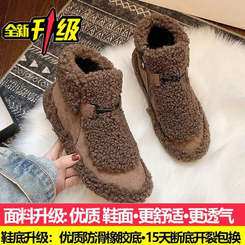冬 韓国風 スノーブーツ レディース 2026 新作 ローカット ラムファー ショートブーツ レディース ファスナー 厚底 保温性 厚手 綿靴