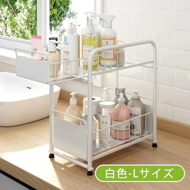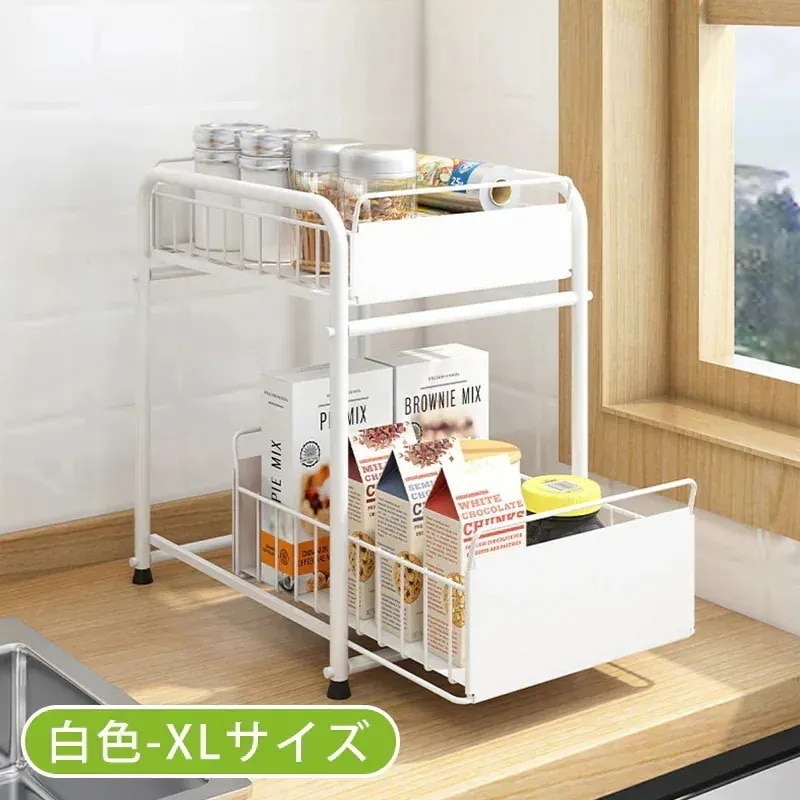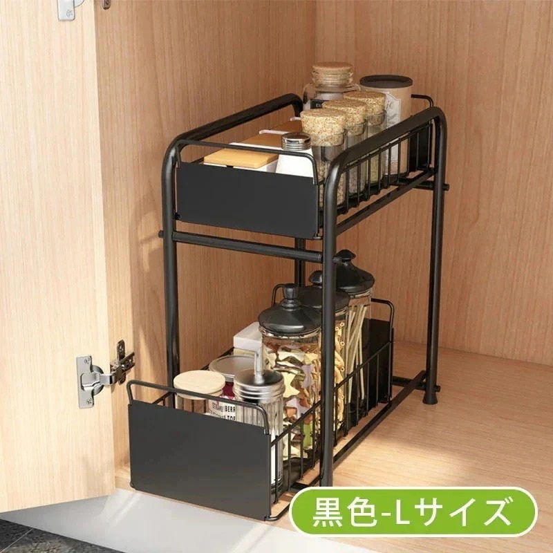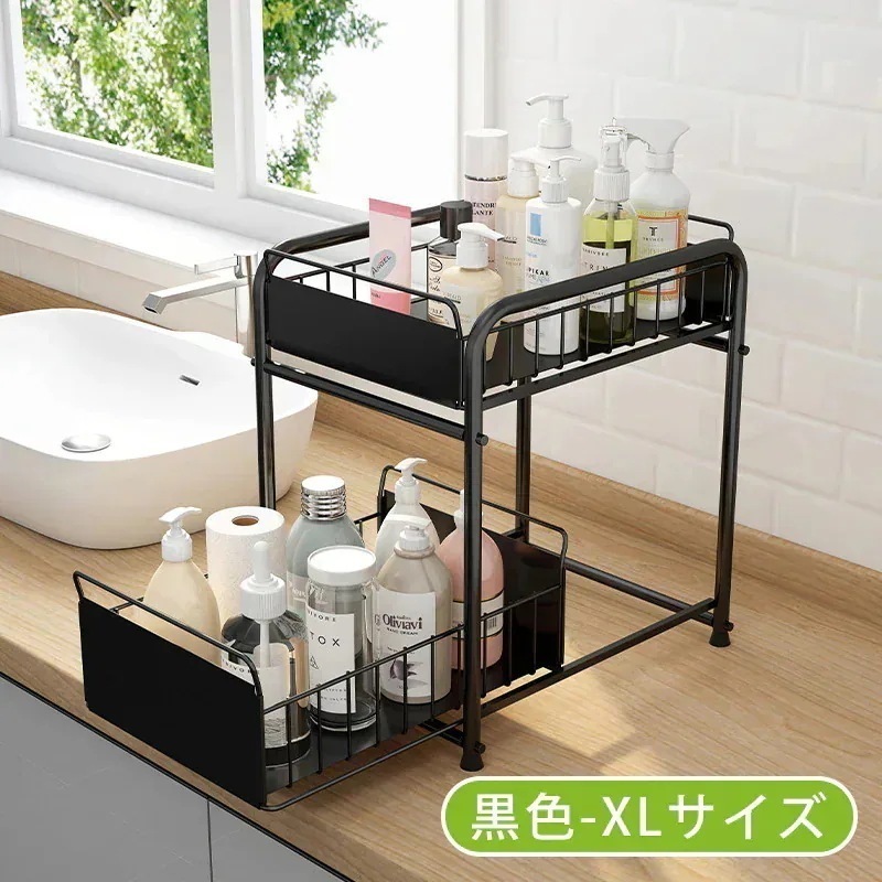 (2点セット)シンク下収納ラック 収納棚 スライド式 引き出し シンク下スライドラック シンク下収納 キッチン収納 引き出し式収納 多機能のキッチン収納 洗面台下収納ラック 隙間収納 小物整理 省スペ