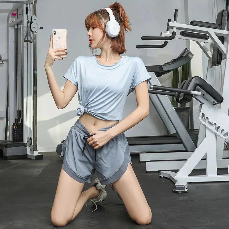 おしゃれヨガウェア/お家ヨガウェア レディース運動Tシャツゆったり速乾ランニングトレーニングフィットネス通気性薄い丸首半袖上着夏トップス 韓国ファッション