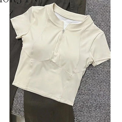 おしゃれヨガウェア/お家ヨガウェア レディーススポーツヨガウェアファスナー半袖Tシャツ女性夏のスリムスリムスリムショート丈トップストップス 韓国ファッション