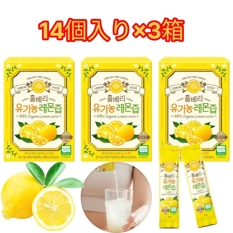 wholeberryオーガニックレモン汁 3箱(25gx42本入)/ ダイエット/ 解毒/ レモン水/ 美容ケア/ バランス/ 健康飲料/ 韓国人気飲料/ オーガニック飲料 / スリムなスタイル