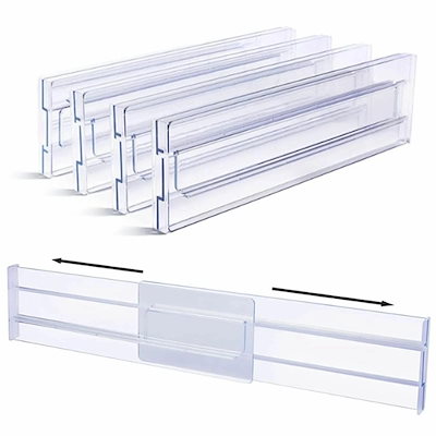 引き出し仕切り板 4枚セット アクリル板 伸縮 長さ27.5cm~52cm調節可能 自由に組み合わせ タンス クローゼット キャビネット用 分類収納 整理整頓グッズ (4枚セット)