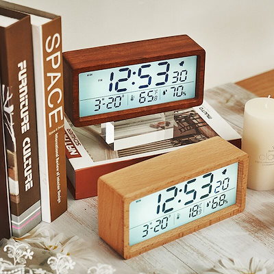 卓上時計 デジタル置き時計 木目調 卓上 北欧 デジタル アラーム 木製 ウッド LED表示 日付 温度 カレンダー 湿度 光る 輝度調節 連続秒針 目覚まし時計 サペリ ヤケキ 天然竹 おしゃれ 置