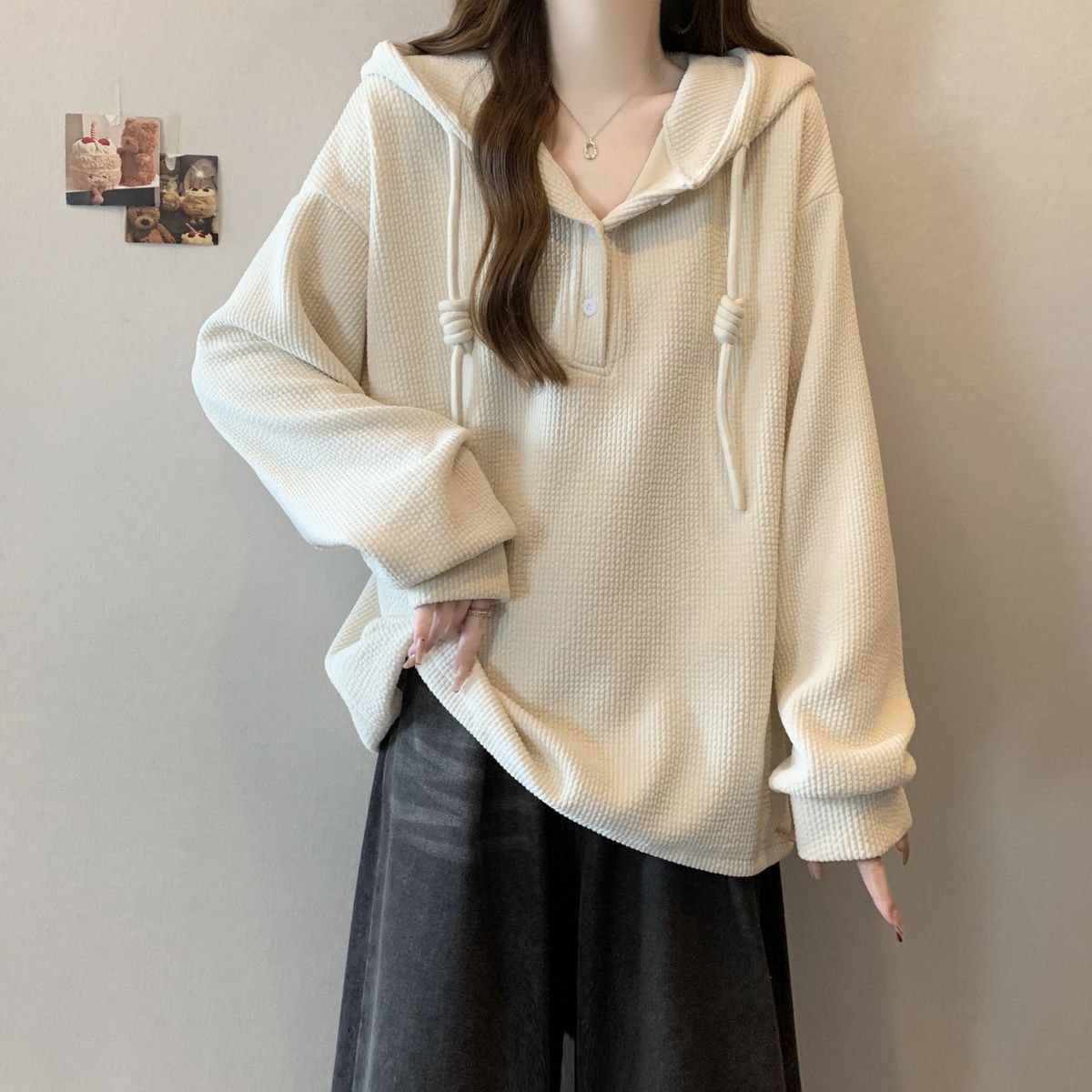 オーバーサイズ テクスチャー感 ストライプ フード付きトップス 女性 新作 ゆったりシルエット 細見え ファッション 長袖フーディ