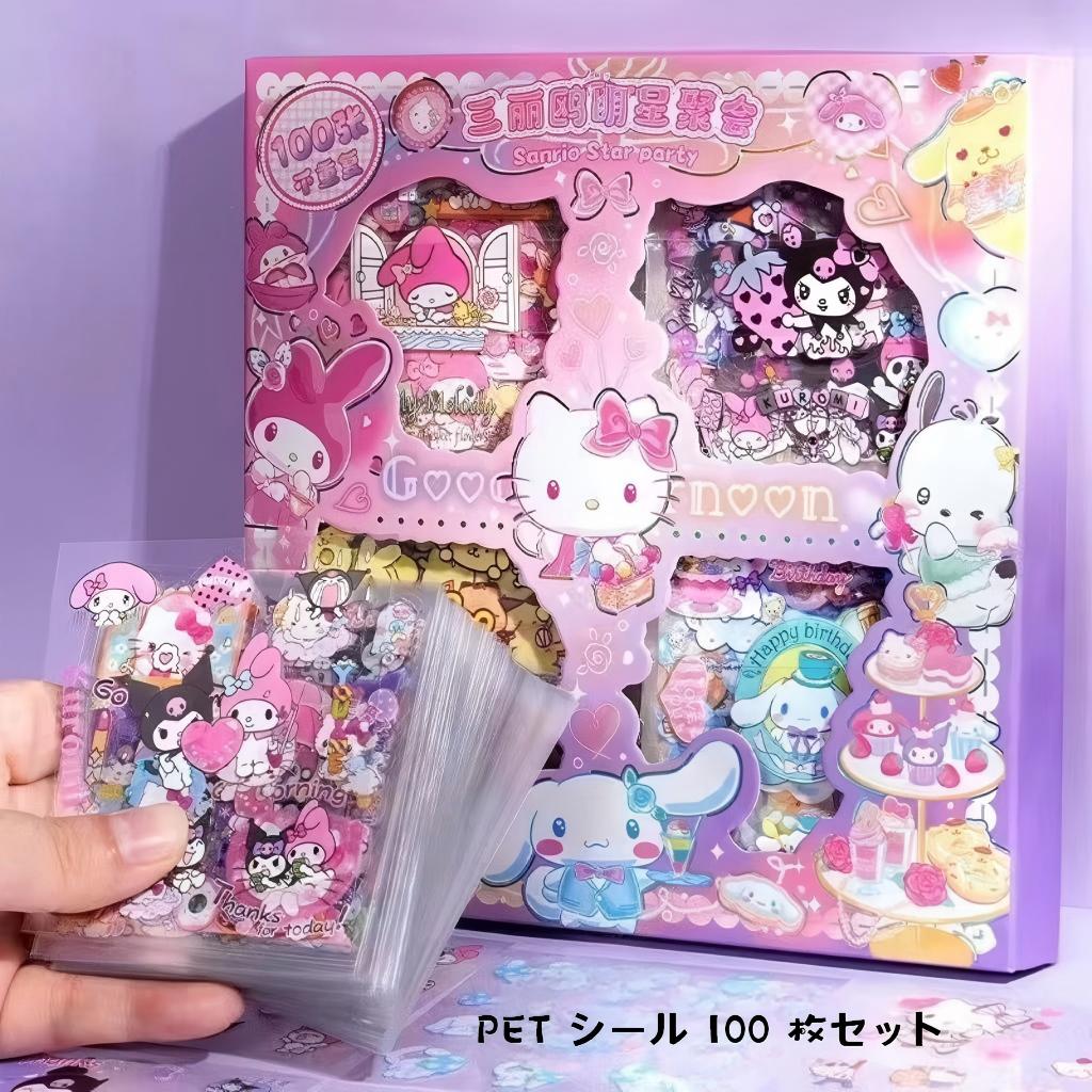 手帳ステッカー ギフトボックス 100 枚セット いちごくま クロミ シナモン マイメロ カピバラ グミカード 防水 PET シール 子供 女の子 かわいい キャラクター デコレーション プレゼント