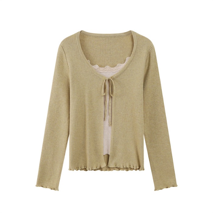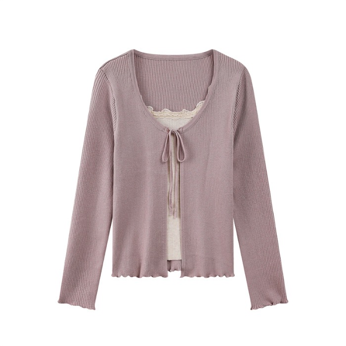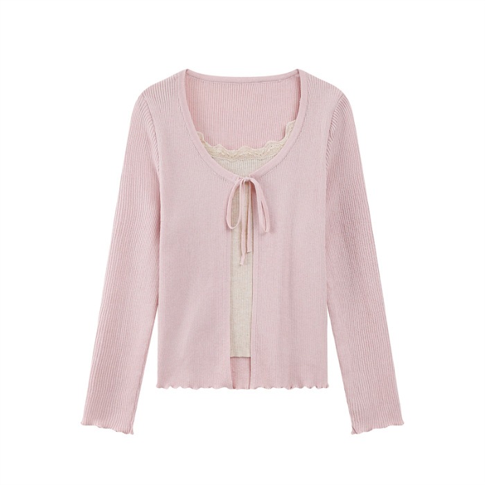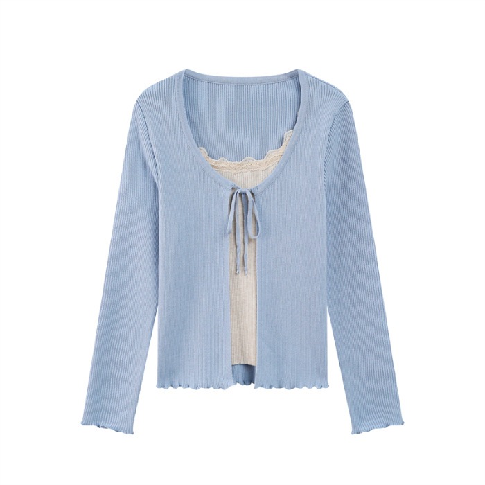 甘く優しい風合い カラーブロック 見せかけツーピース インナー長袖 秋 韓国風 細身スリム 合わせやすい ゆるい風 ファッショントップスレディース