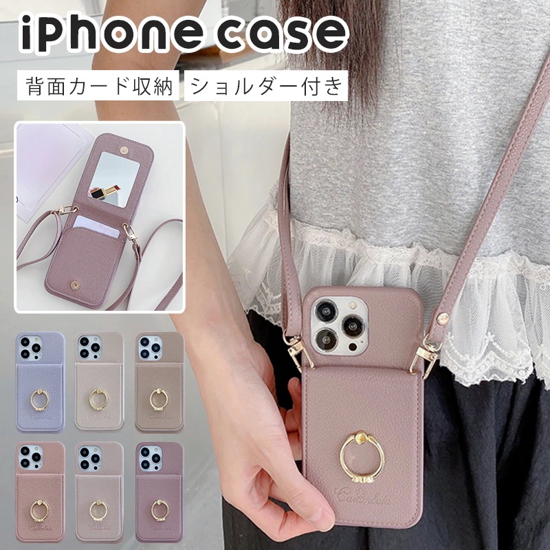iPhone17Pro ケース カード収納 レザーケース ショルダー 肩掛け 斜め掛け iPhone16ケース リング付き スタンド機能 人気 携帯ケース 耐衝撃 落下防止 高級感 鏡 ミラー付き