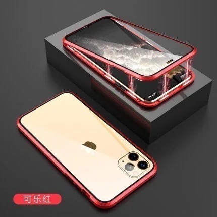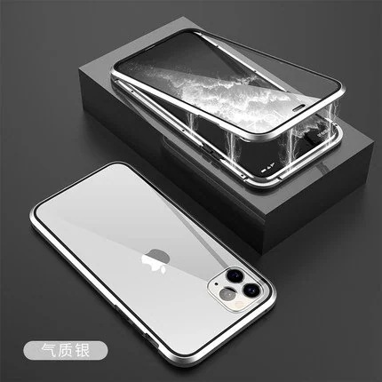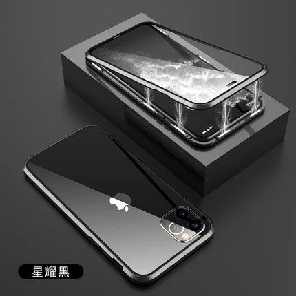 phone15携帯ケース金属磁気吸引両面万磁王リンゴ13proガラス転倒防止保護カバーに適用 iPhone 12 Pro Max