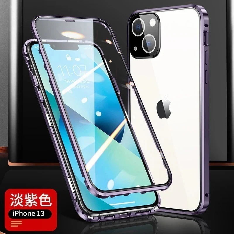 2025福袋-Iphone15携帯ケース金属磁気吸引両面万磁王リンゴ13proガラスx転倒防止保護カバーに適用 iPhone 12 Pro Max