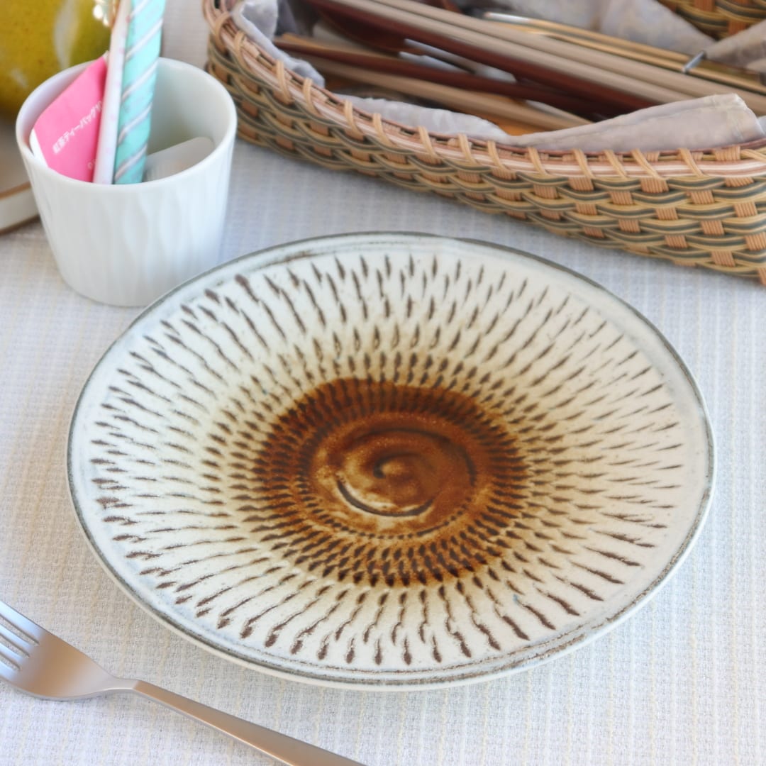 刻カンナ 大皿 22.5cm 日本製 美濃焼 7寸皿 プレート ラウンド 丸皿 中皿 平皿 リム皿 取り皿 ビュッフェプレート ディナープレート メイン皿