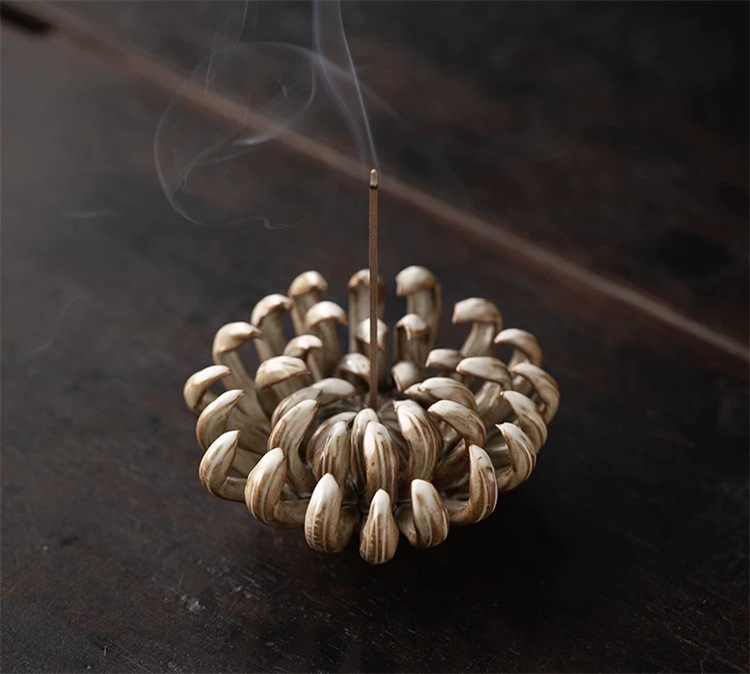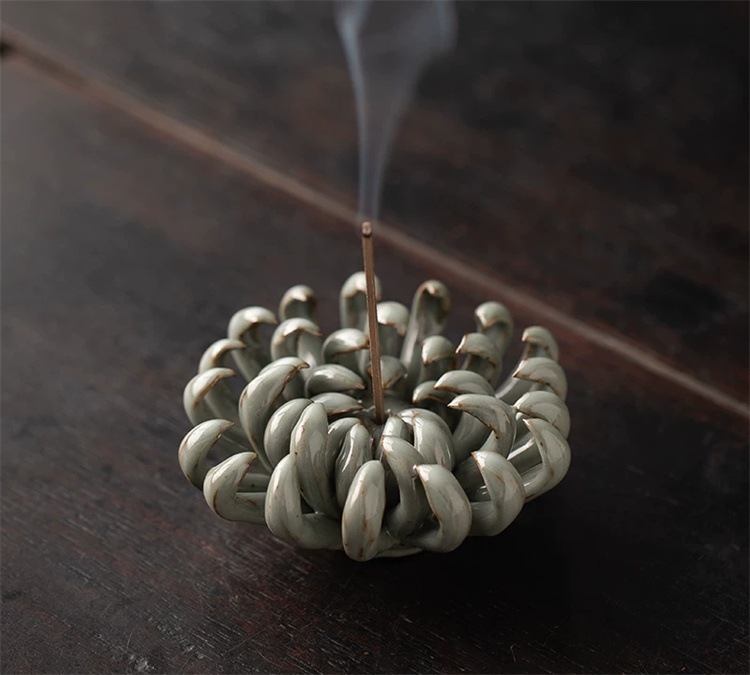 Twinkling star早い者勝ち 菊花モチーフ香立て 宋代風開片釉 手作り陶磁器香炉 和室 リビング用 静謐な空間演出