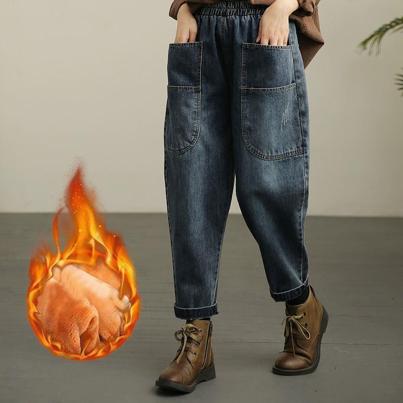 DEMUXIデニムパンツ レディース 大きいサイズ 選べる 裏起毛 パンツ レディース 極暖 裏フリース コクーン パンツ ウエストゴム カーブ パンツ ワイド 個性派 サルエルパンツ レディース ゆったり ジ