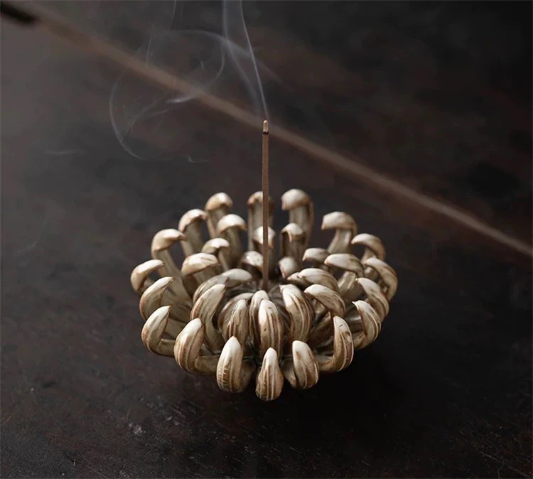 早い者勝ち 時間と共に変化する釉薬の景色 菊の花形香立て 伝統技法と現代生活の融合 集中 リラックスタイムを彩る ギフトにも喜ばれる上品な佇まい
