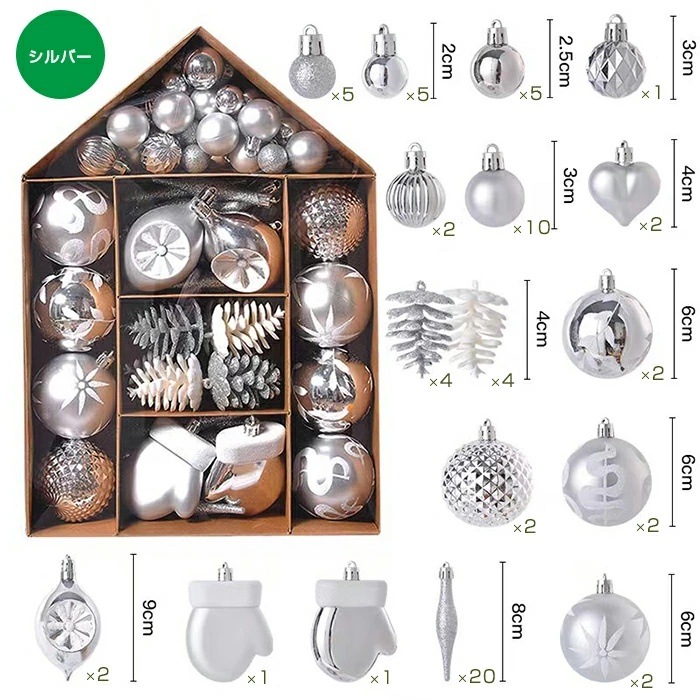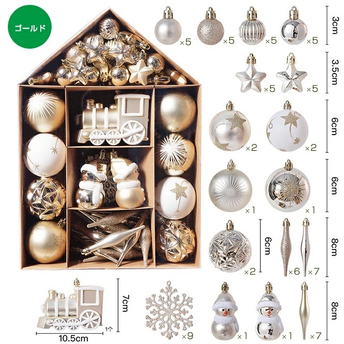 クリスマスオーナメント クリスマスツリー飾りオーナメントボール ボールセット おしゃれ 豪華 家庭用 北欧 飾り 装飾 収納ボックス付き ゴールド シルバー キラキラ 光沢感 カラフル 可愛い 小物