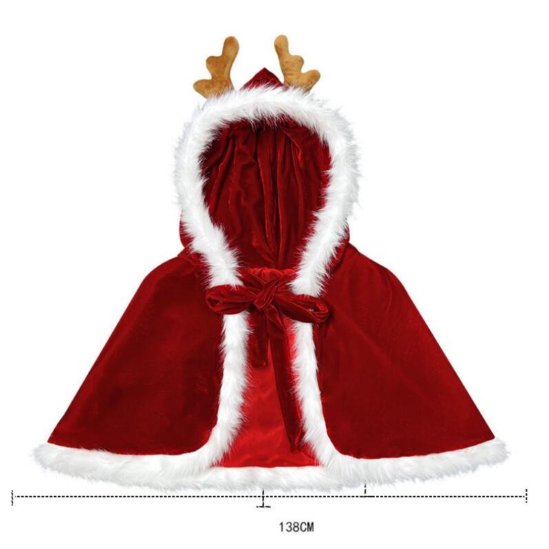 クリスマスマント風トナカイ角付き フード ボンチョ レディース クリスマス コスプレ衣装 ボンチョ サンタクロース マント 女性 大人 クリスマス 変身仮装 サンタ