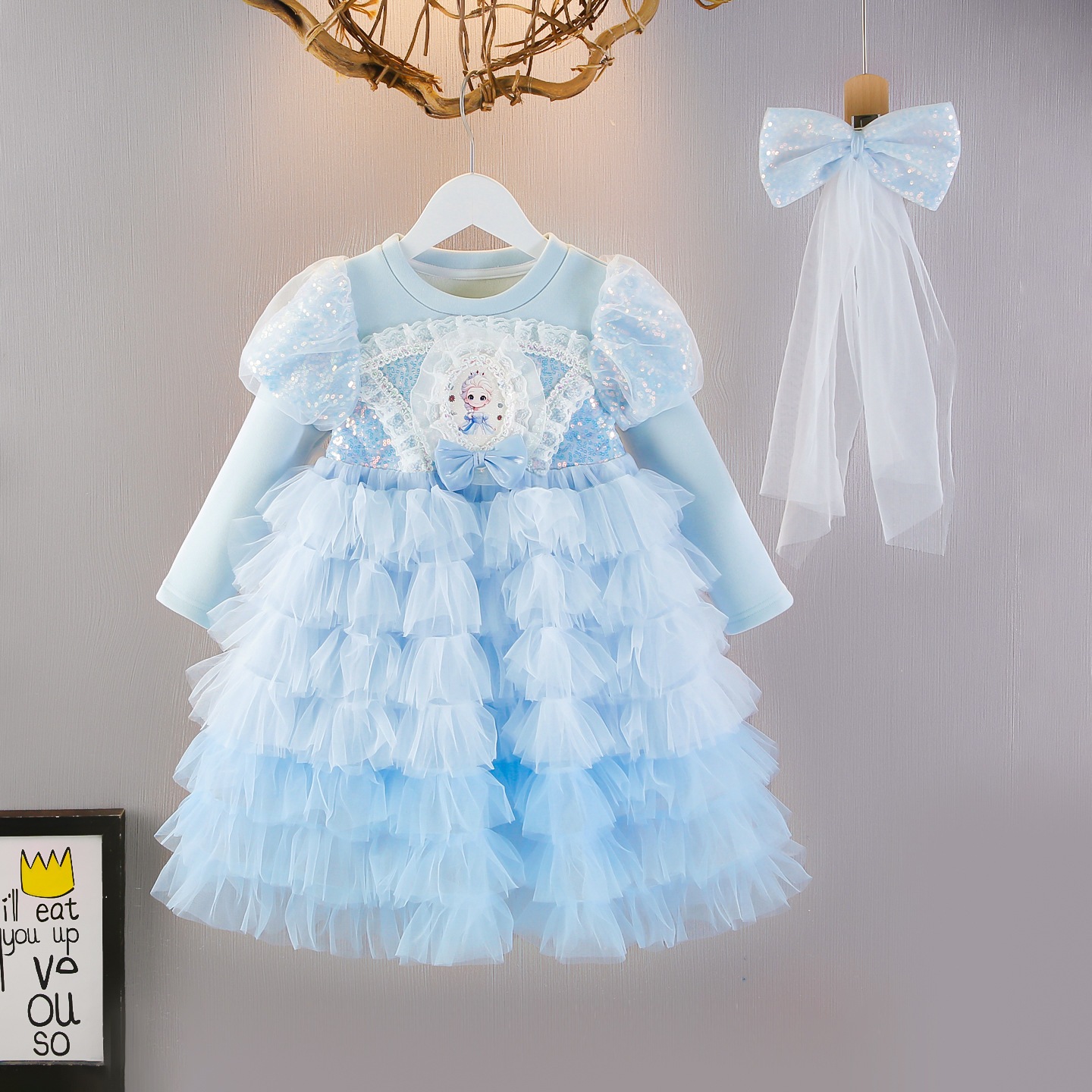 女の子ワンピースエルサ姫スカート冬のエルサ加絨保温紗スカートケーキスカートプリンセスドレススカート