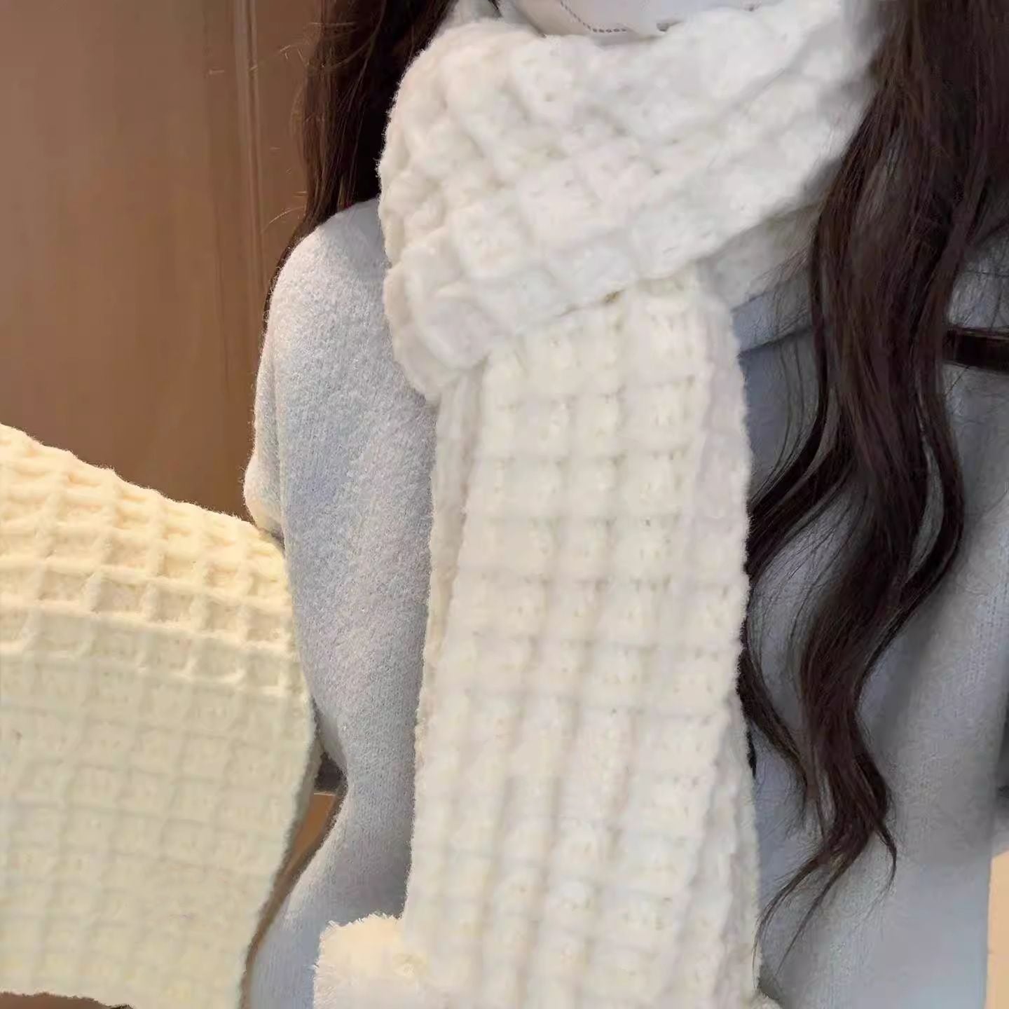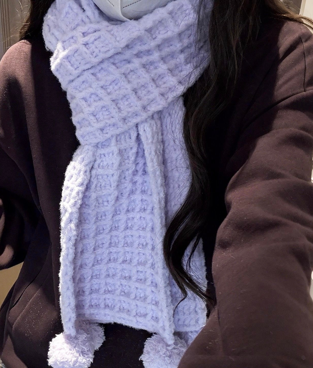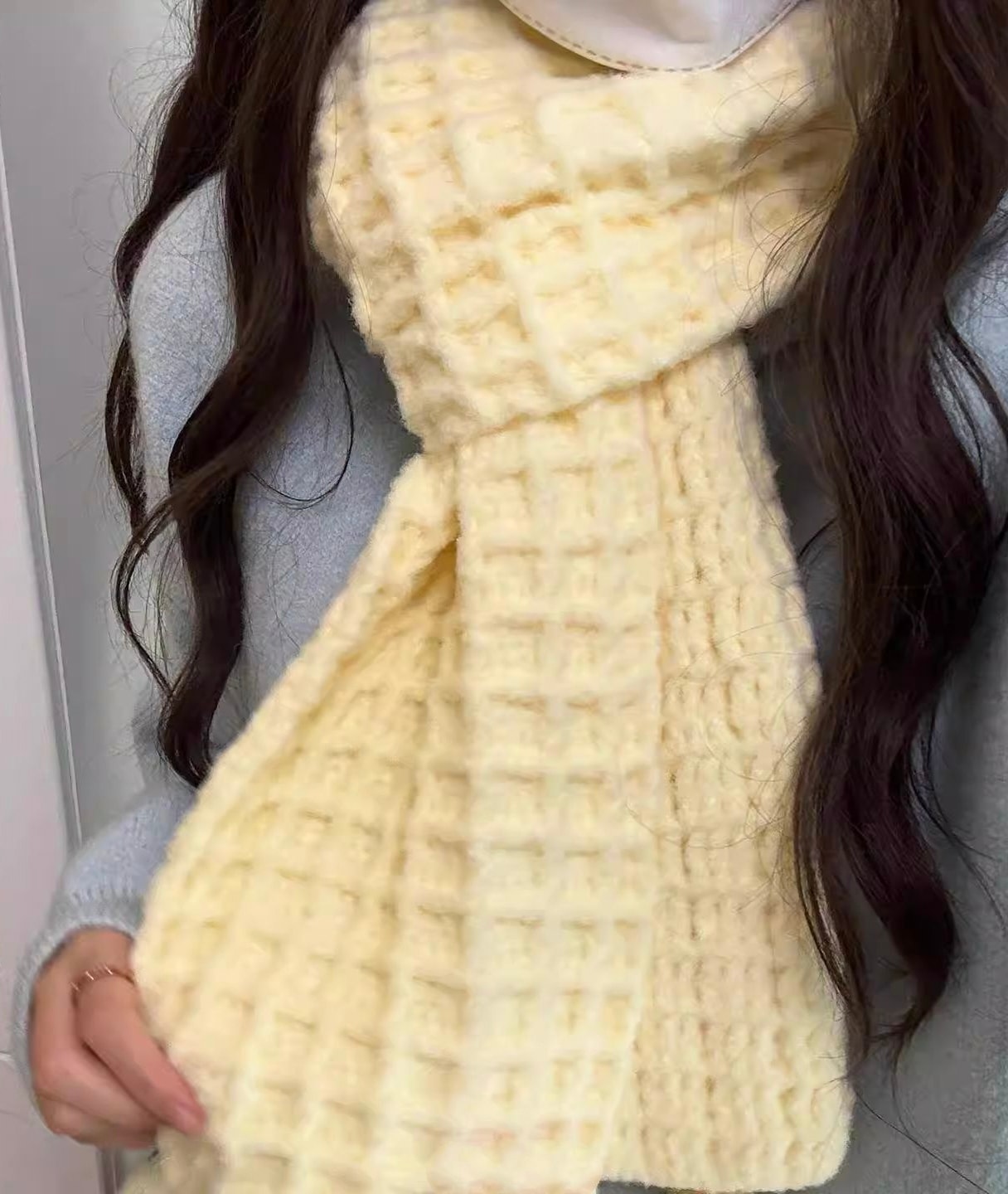 新型快速出荷保温快適かわいい完成品柔らかいモチモチかわいい快適な雲ワッフルマフラー手織り冬の女性かわいい純色毛糸が首を囲んでいる