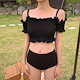 夏 水着 体型カバー ビキニ 無地 オフショルダー ワンショルダー 水着セット ママ水着 ラッシュガード レディース 韓国ファッション