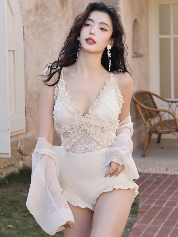 春夏 ファッション レース セクシー 2点セット 水着セットアップ 温泉 セクシー 水着 ホワイト/ブラック レディース 可愛い