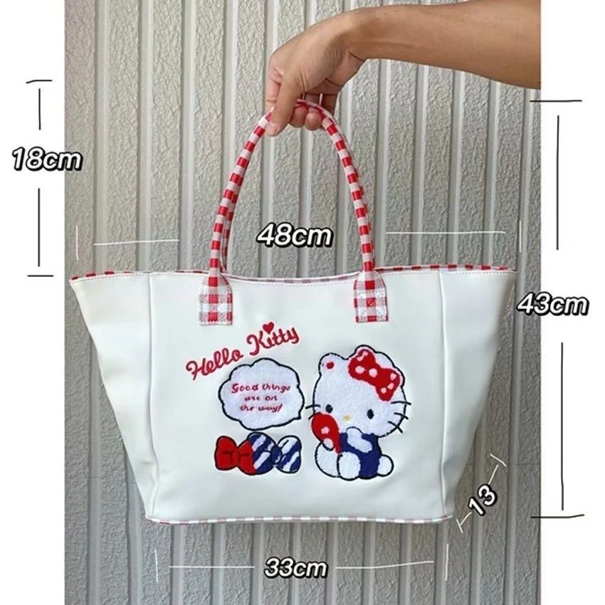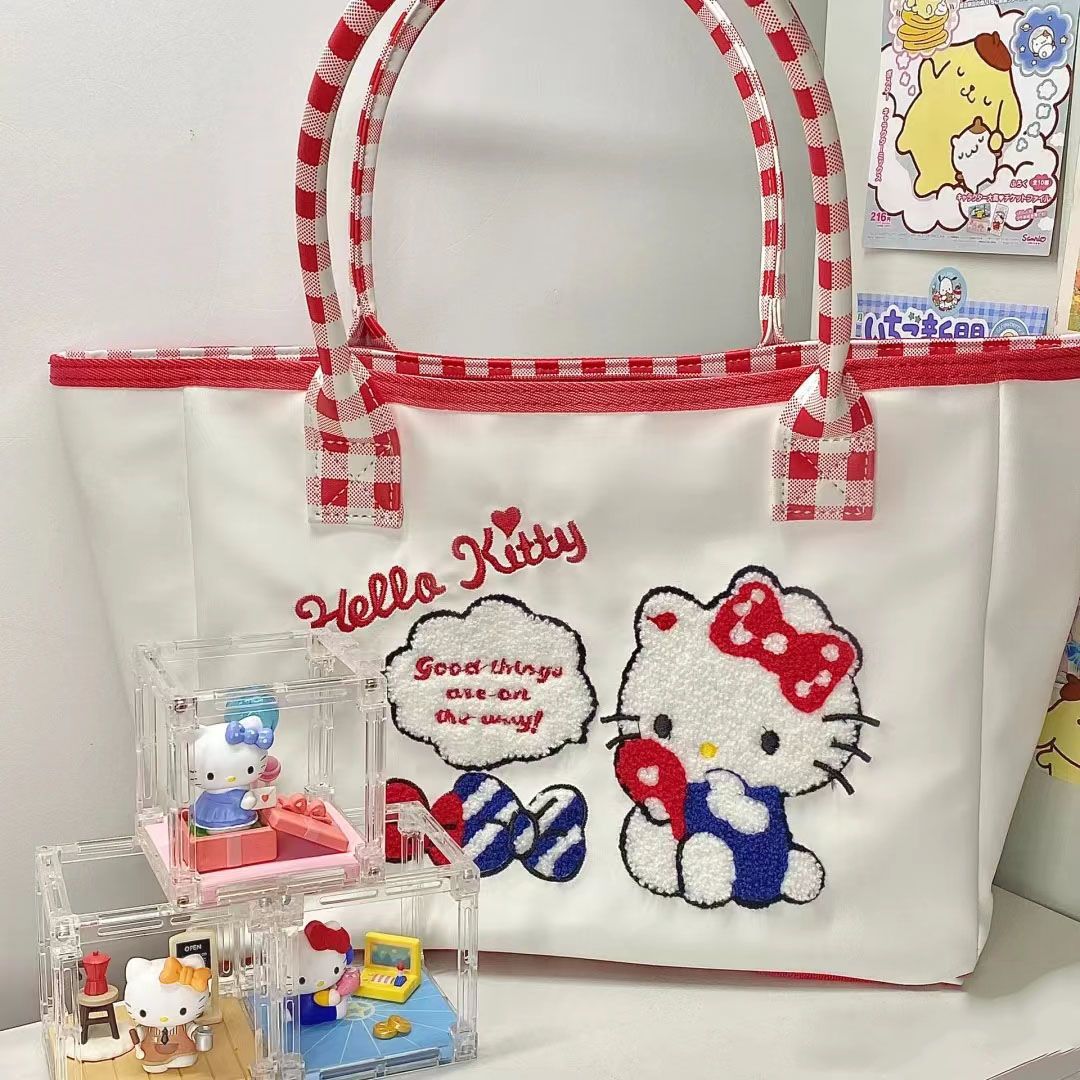 期間限定特典10%HAWANGオリジナル刺繍ハローキティトートバッグかわいい甘い妹学生党容量シングルショルダーバッグ2つの方がお得です