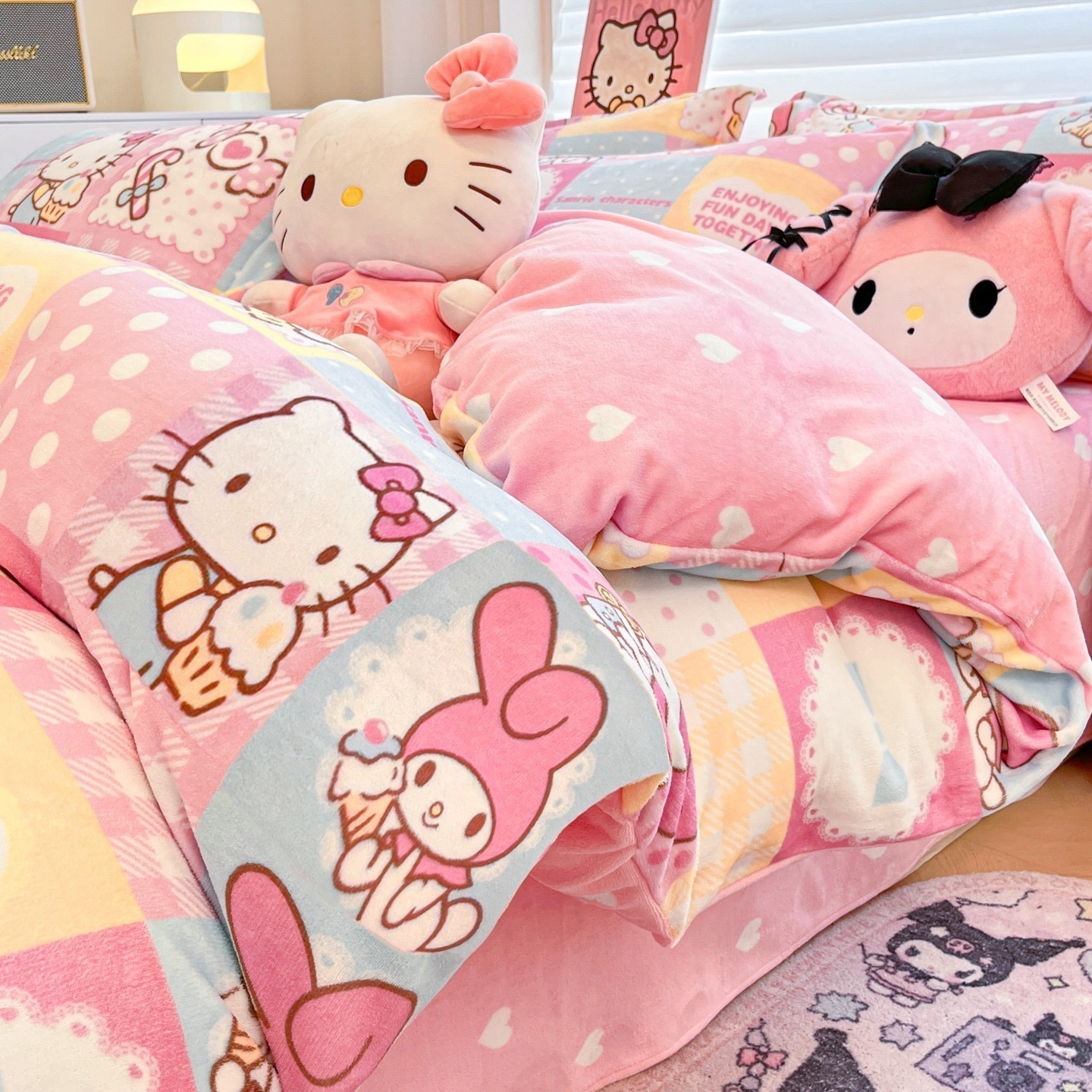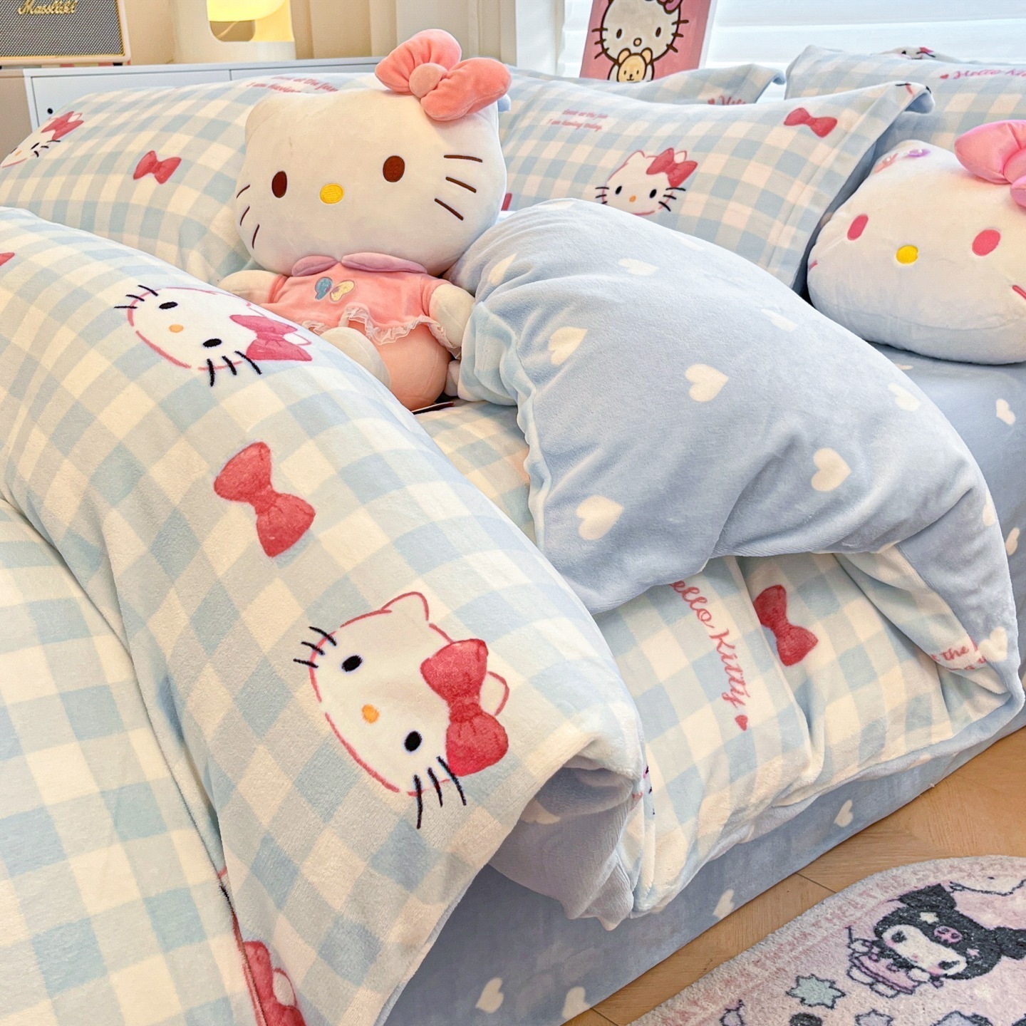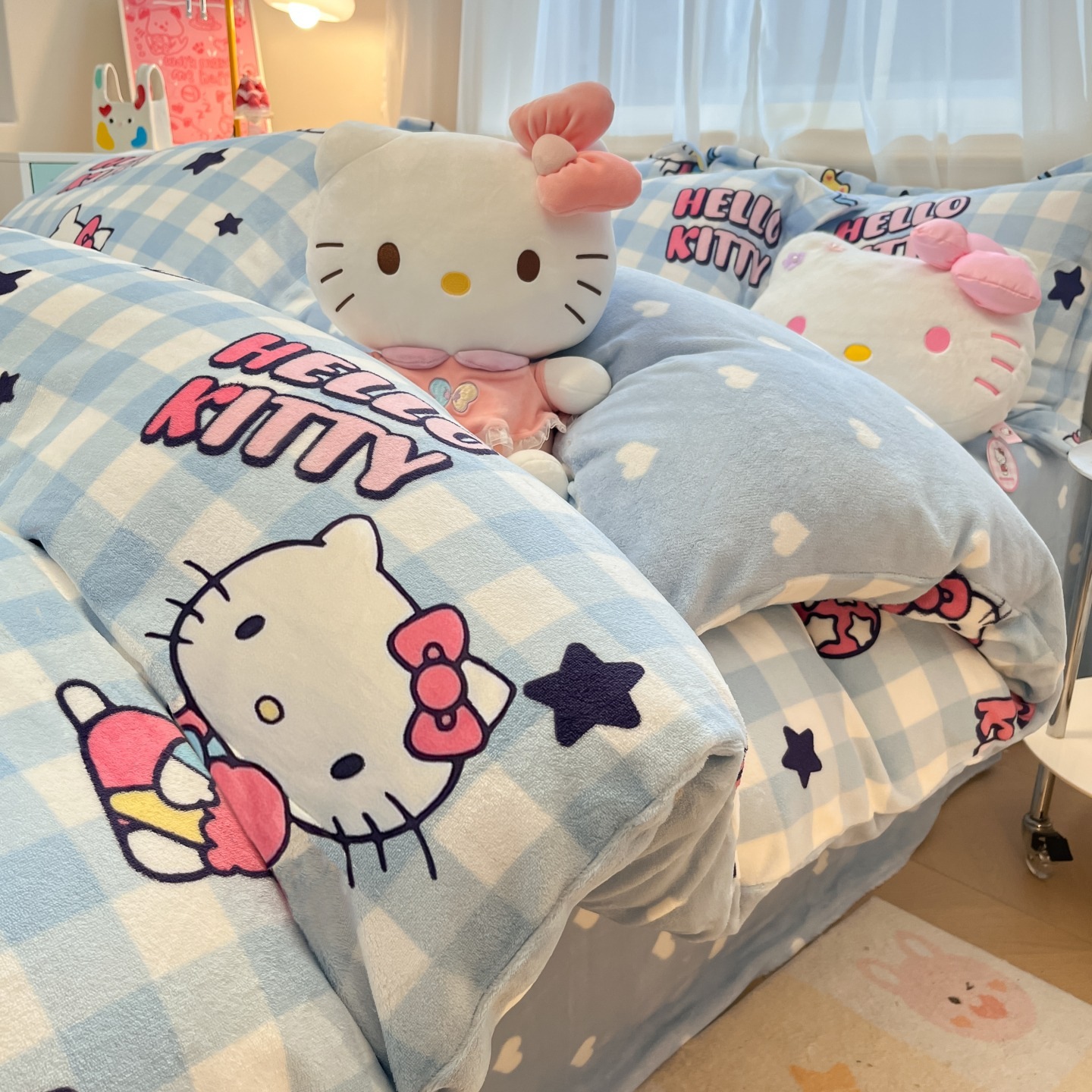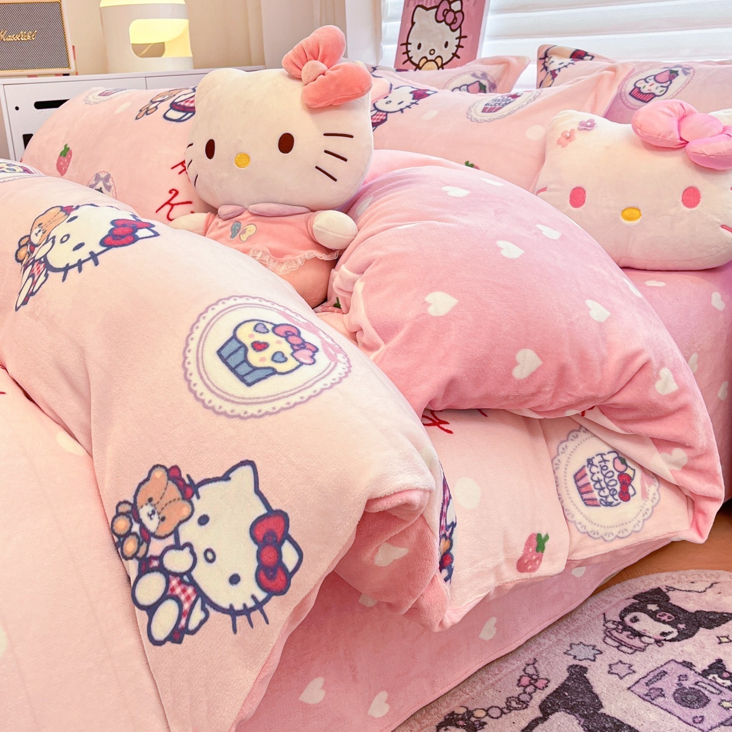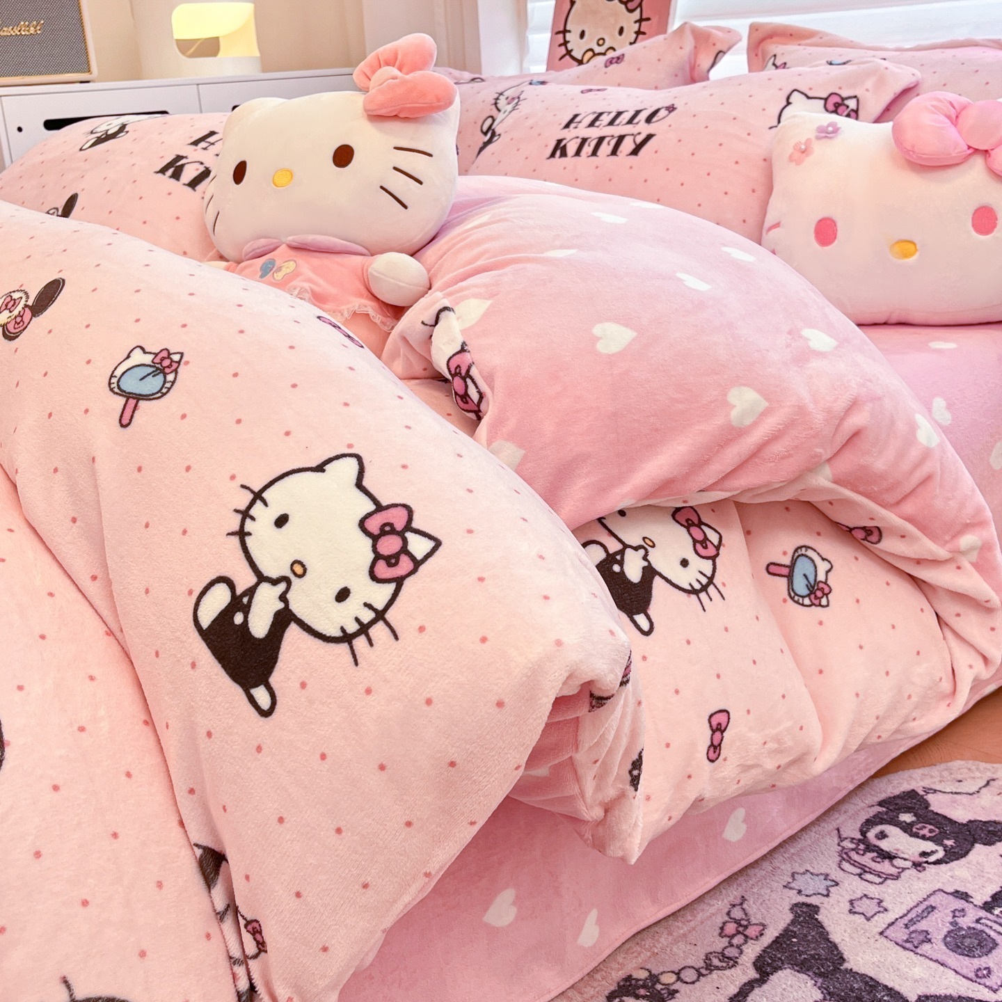 期間限定特典10%サンリオkt猫は保温両面のミルクの毛を厚くしていますアニメ寮のベッドシーツ三点セットです2つの方がお得です