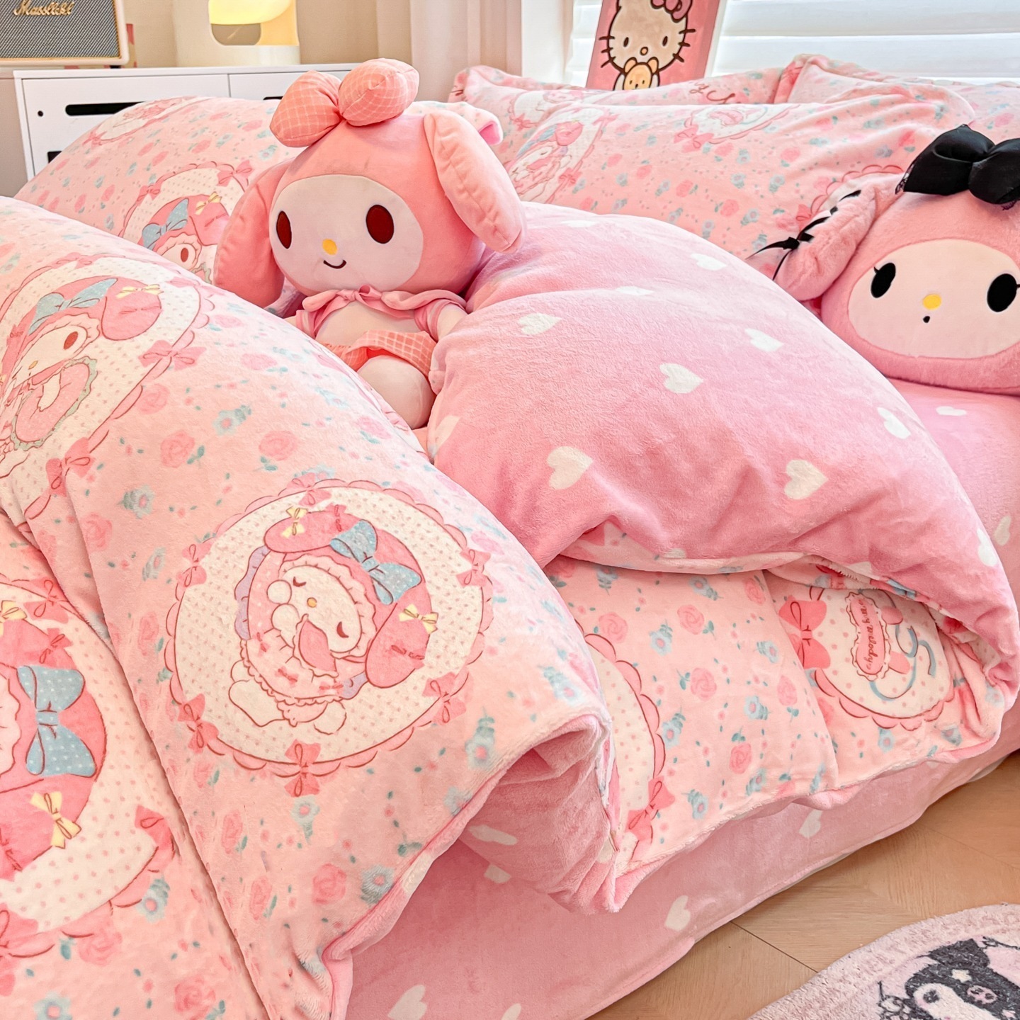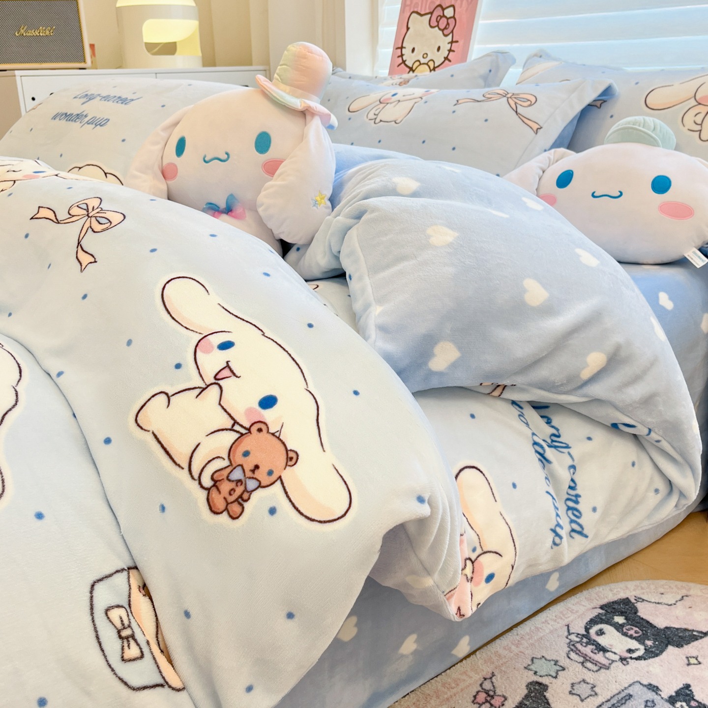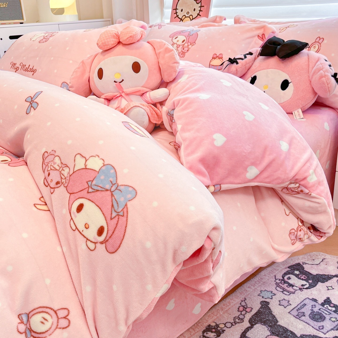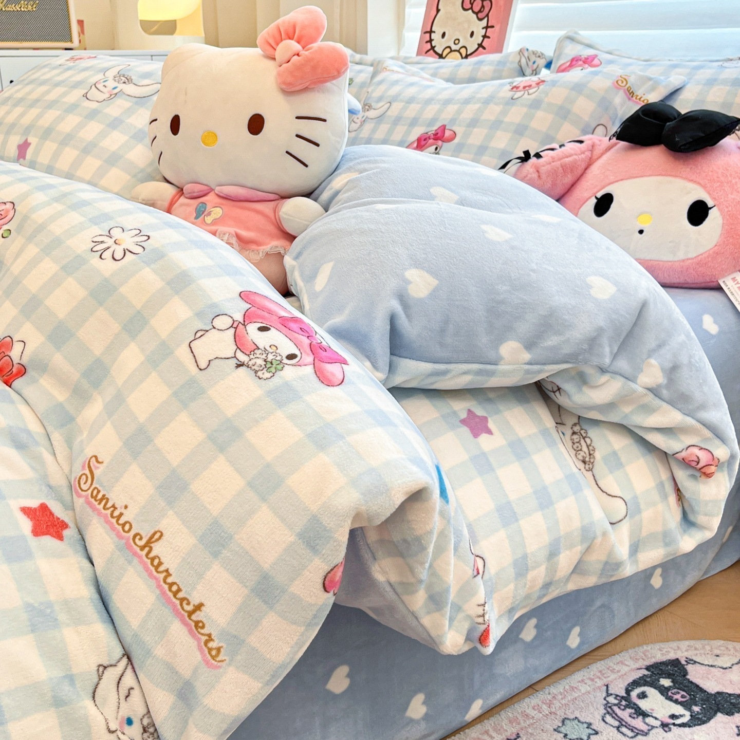 期間限定特典10%サンリオkt猫は保温両面のミルクの毛を厚くしていますアニメ寮のベッドシーツ三点セットです2つの方がお得です