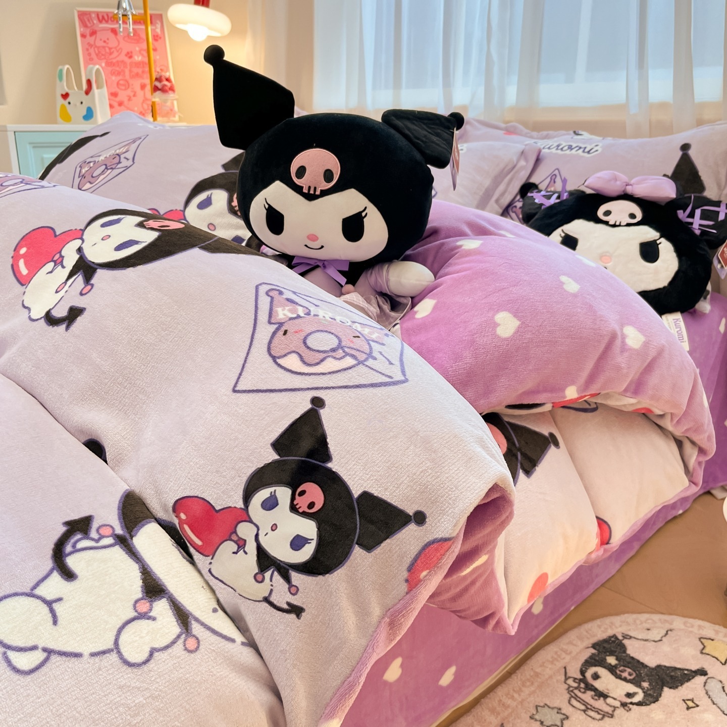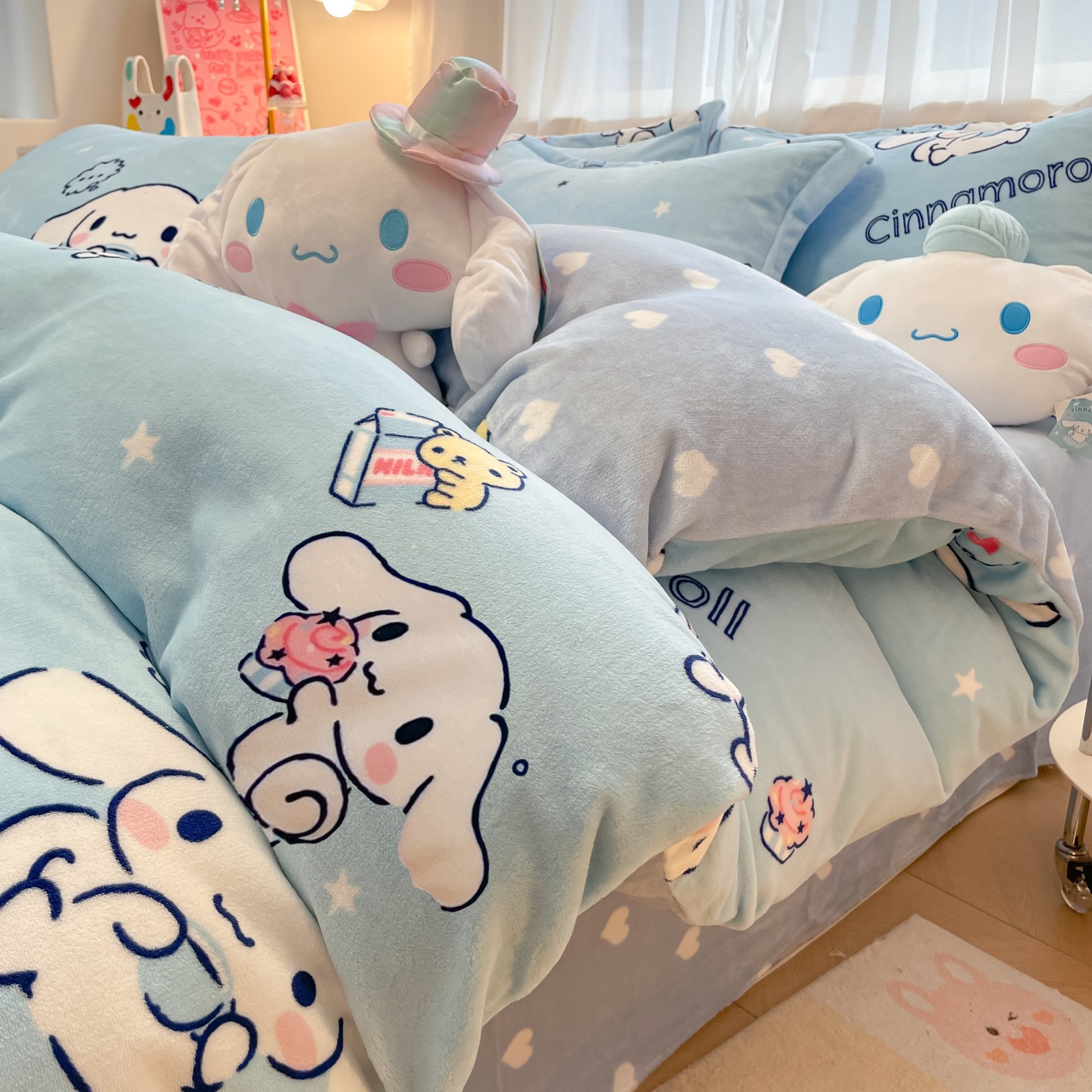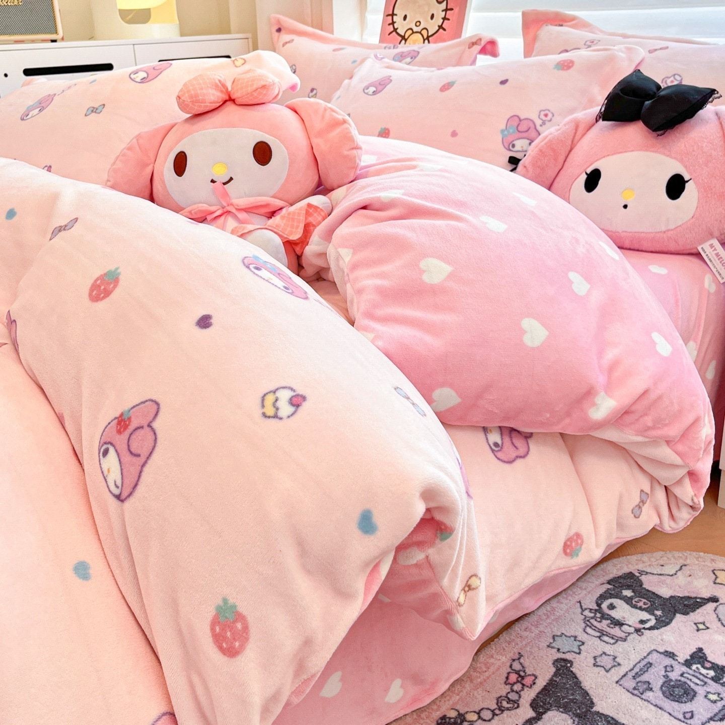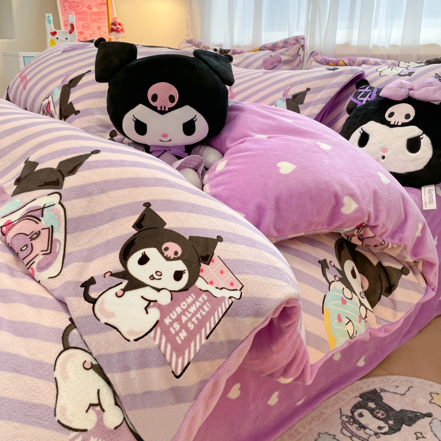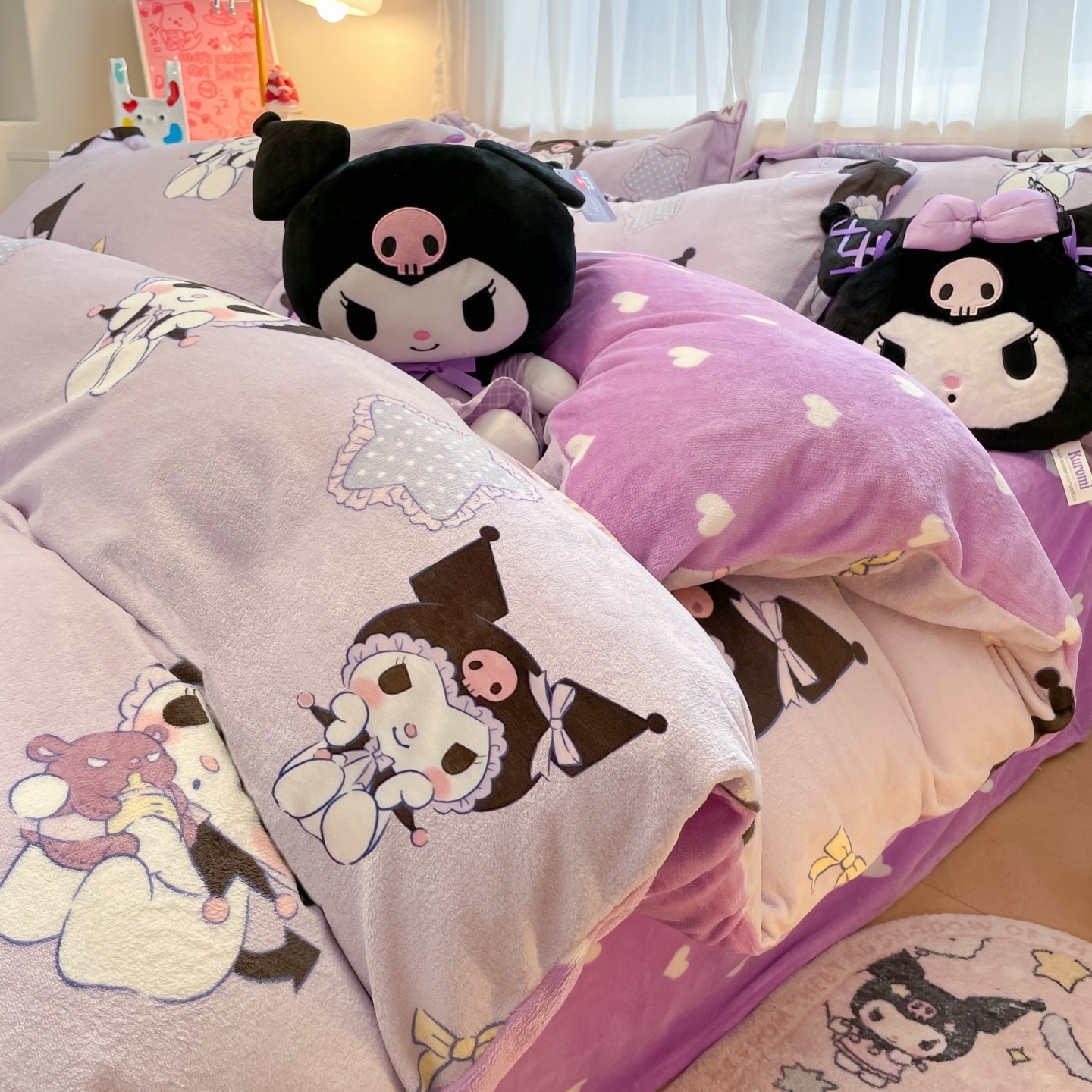 期間限定特典10%サンリオkt猫は保温両面のミルクの毛を厚くしていますアニメ寮のベッドシーツ三点セットです2つの方がお得です