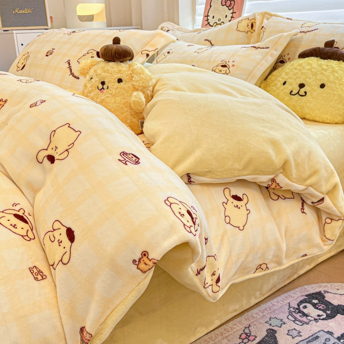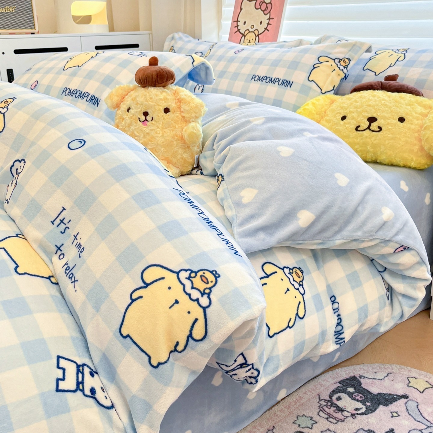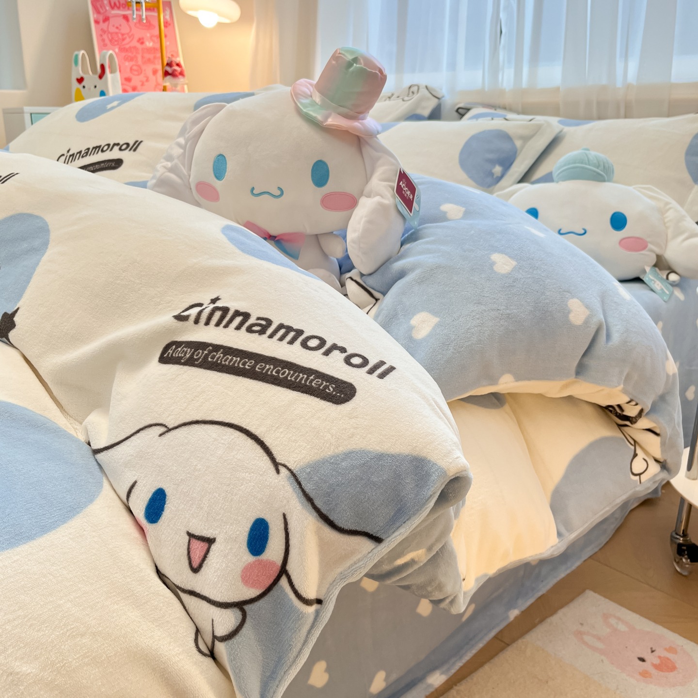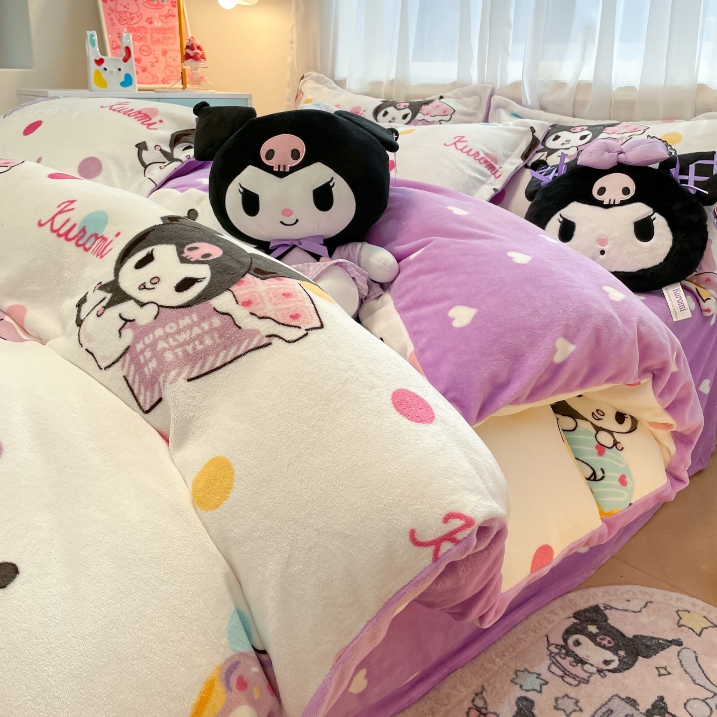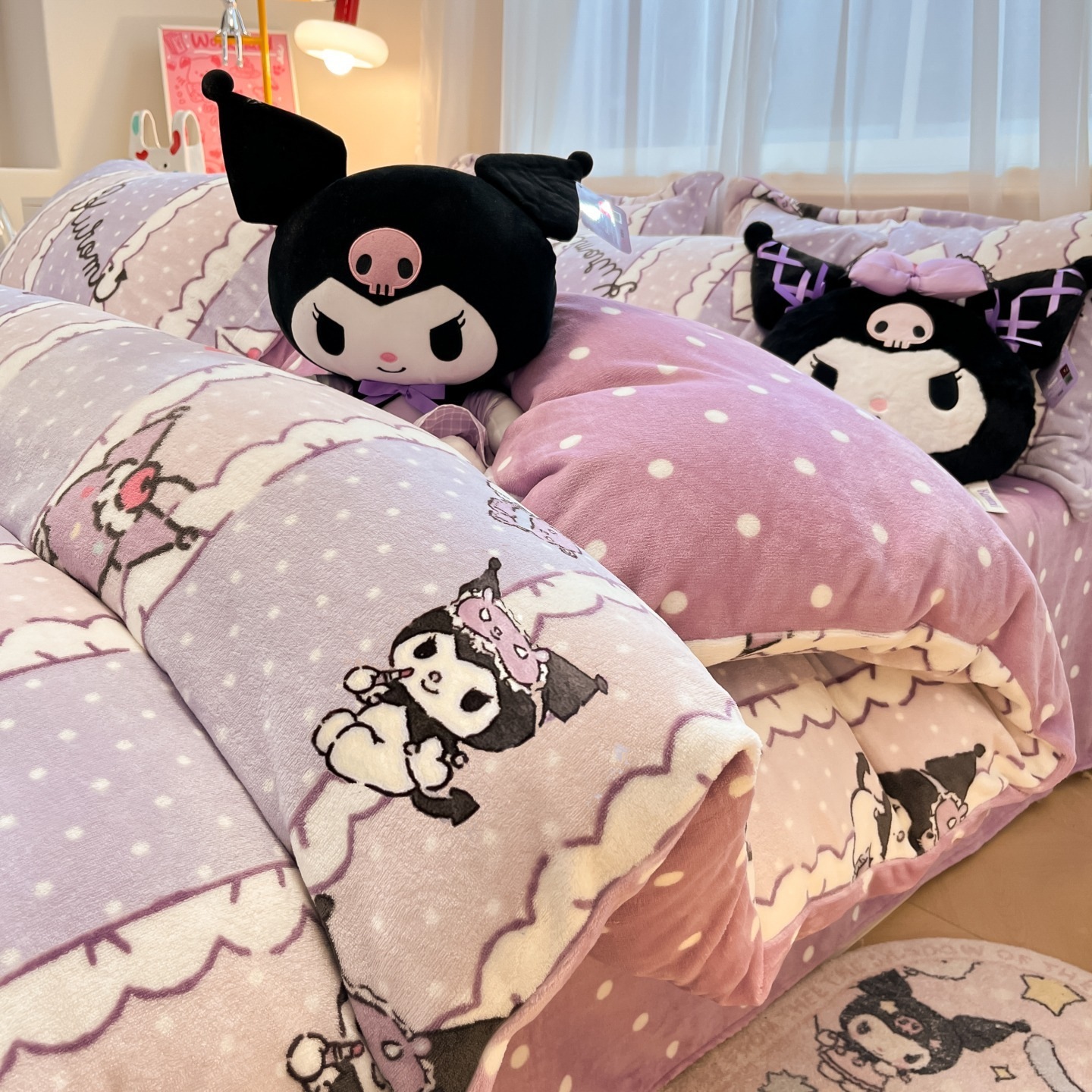 期間限定特典10%サンリオkt猫は保温両面のミルクの毛を厚くしていますアニメ寮のベッドシーツ三点セットです2つの方がお得です