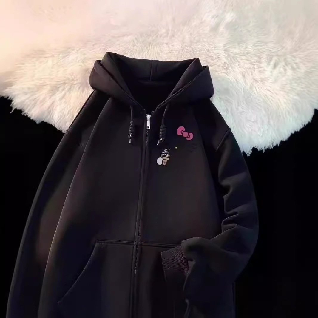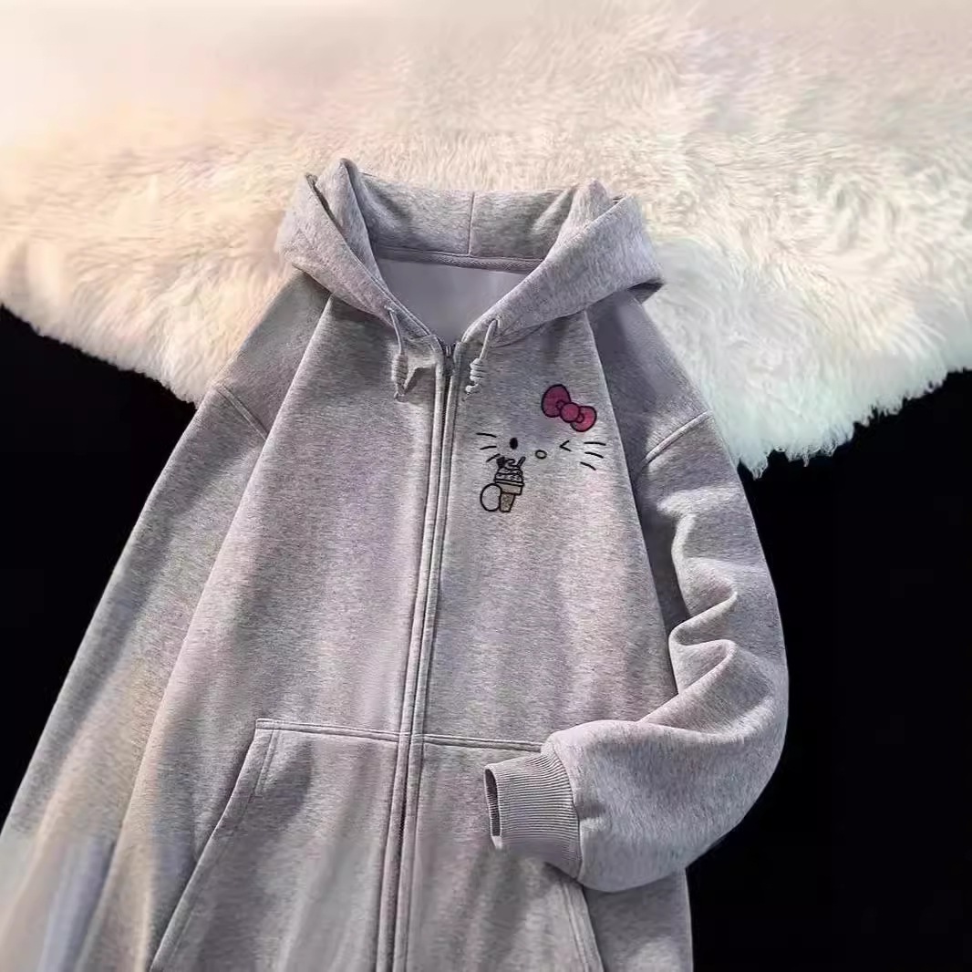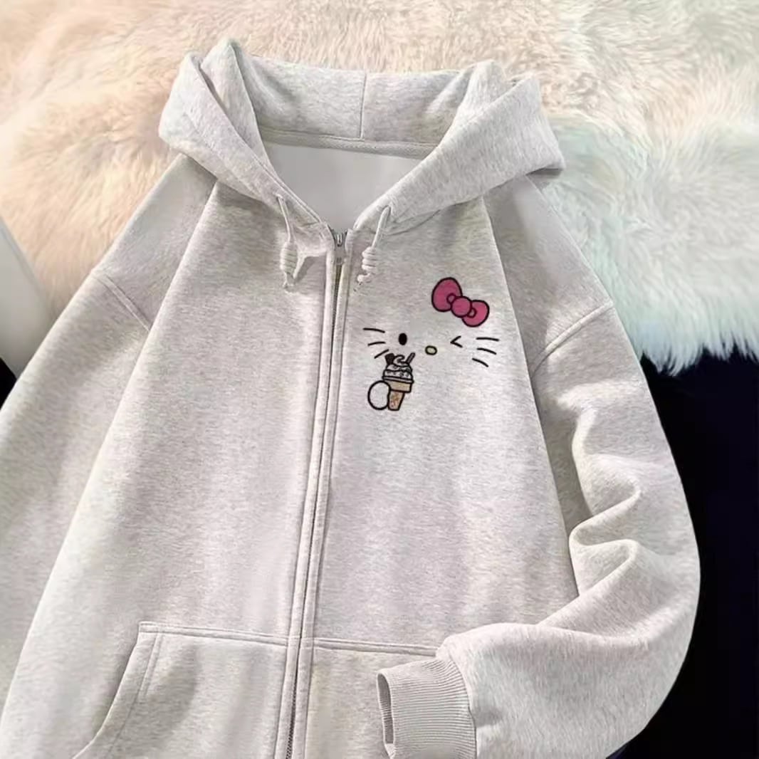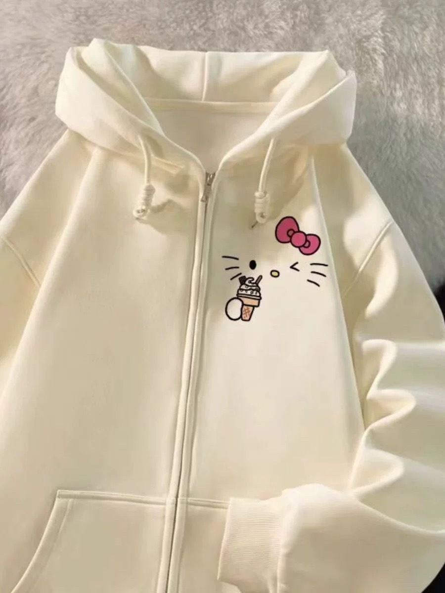 期間限定特典10%ミルク杏色のかわいいkittyカーディガンと帽子付きガーディアン女性秋のコートの小さな上着2つの方がお得です