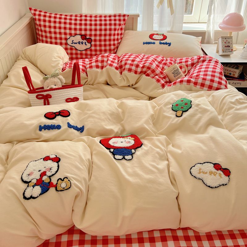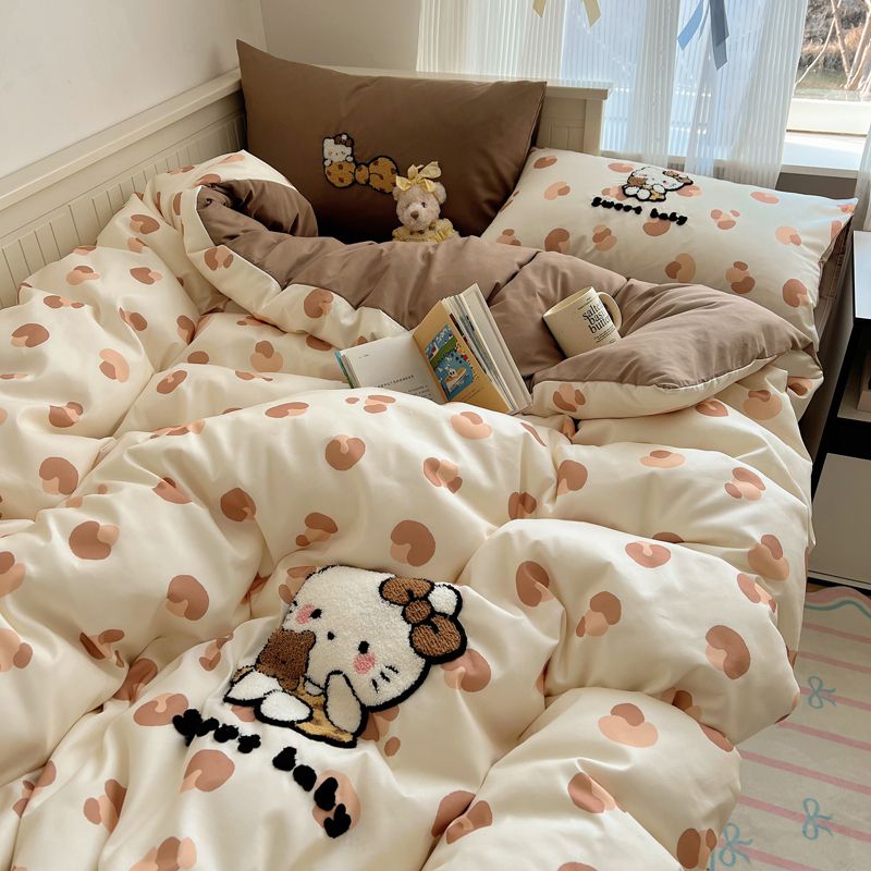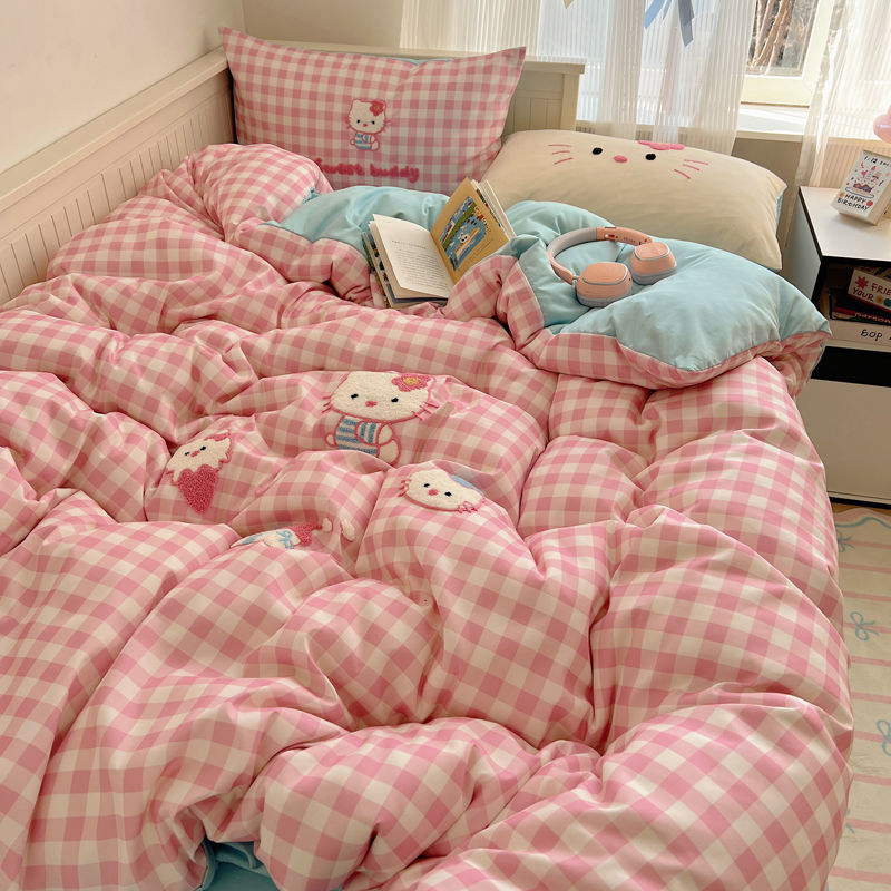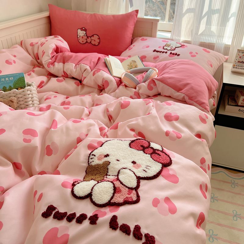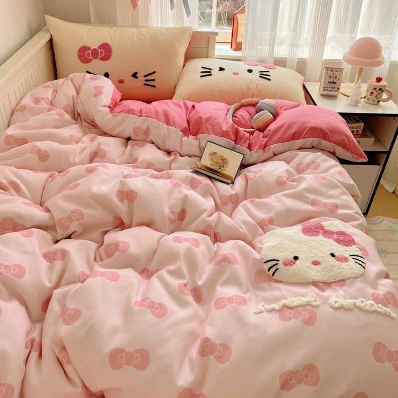 期間限定特典10%猫猫模様タオル刺繍肌柔らかい水洗い綿4点セットkitty猫布団シーツシングル3点セット2つの方がお得です