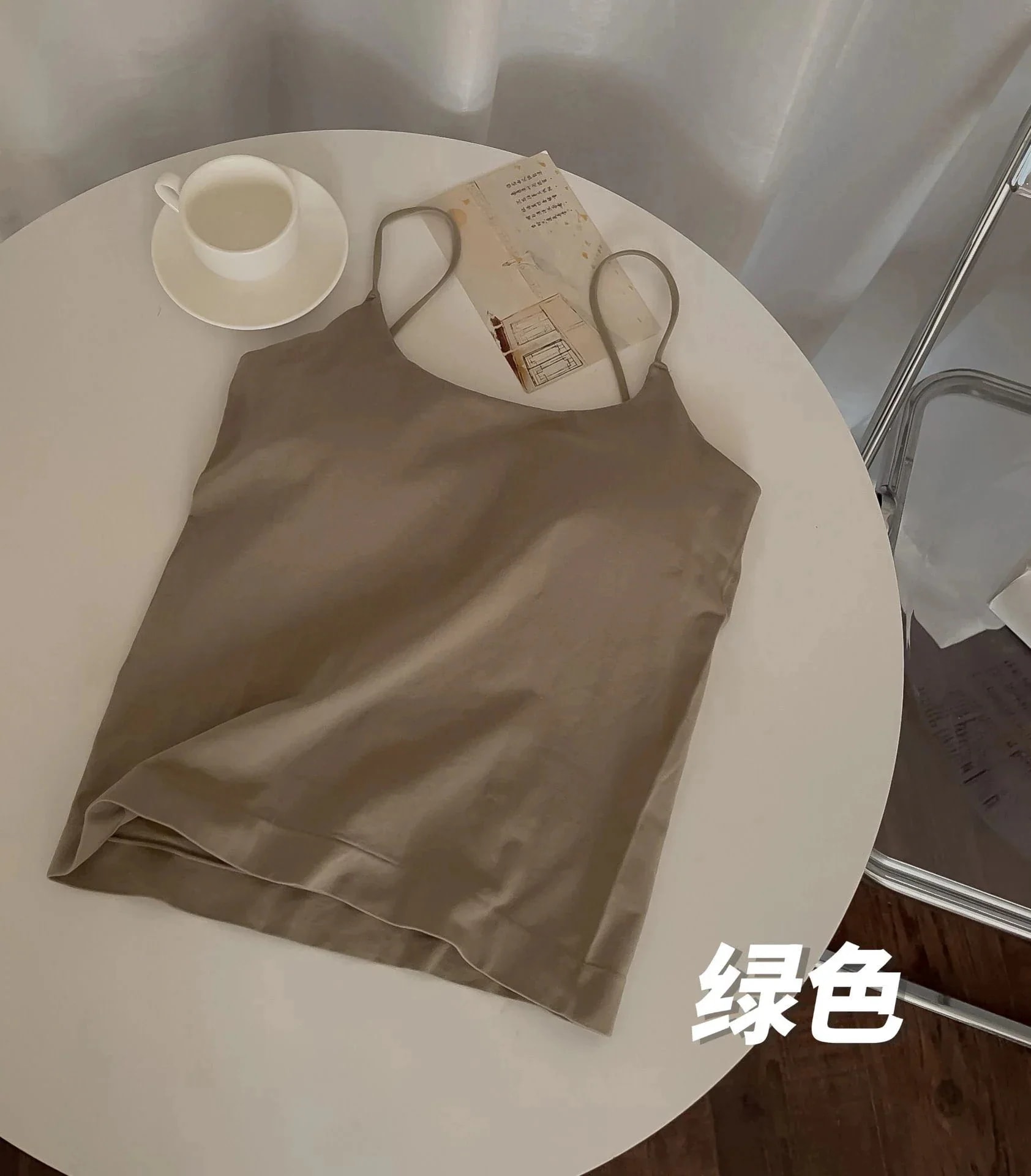 2026新作 6色 キャミソール カップ付き 無地 パッド入り 美胸インナー ストラップ 下着 レディース アウターとして着用 スリム効果 ノースリーブ ベースレイヤー ストラップレス ラップトップ