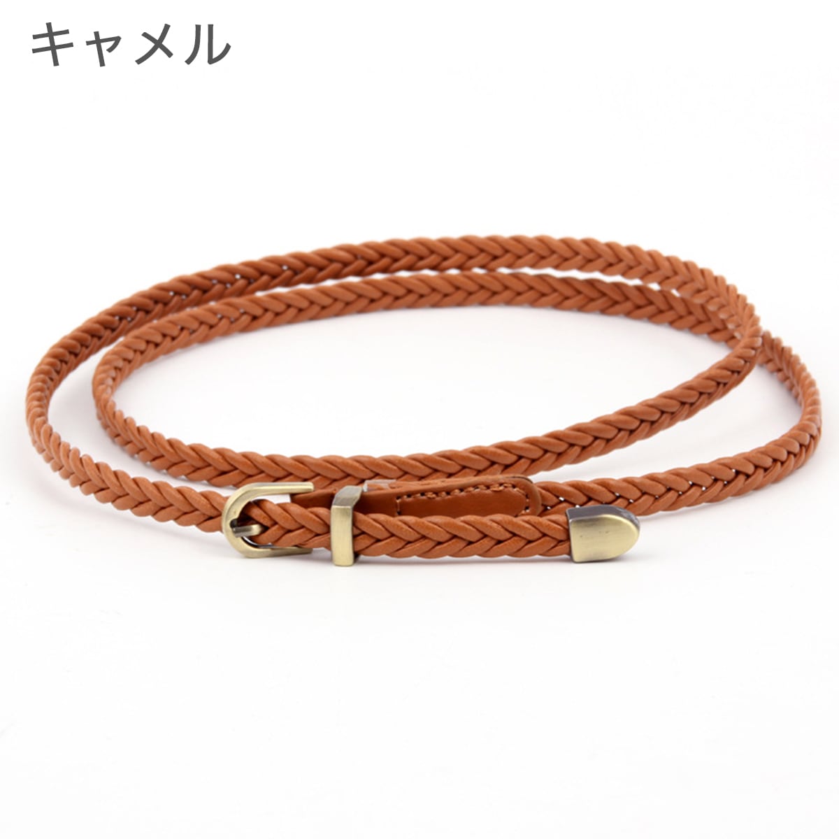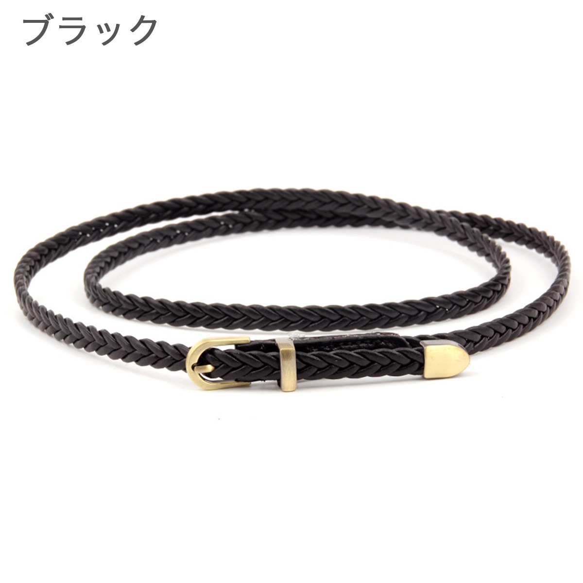 レディース ベルト 細い おしゃれ フリーサイズ 細ベルト ワンピース 黒 穴なし スリムベルト シンプル アクセサリー 小物