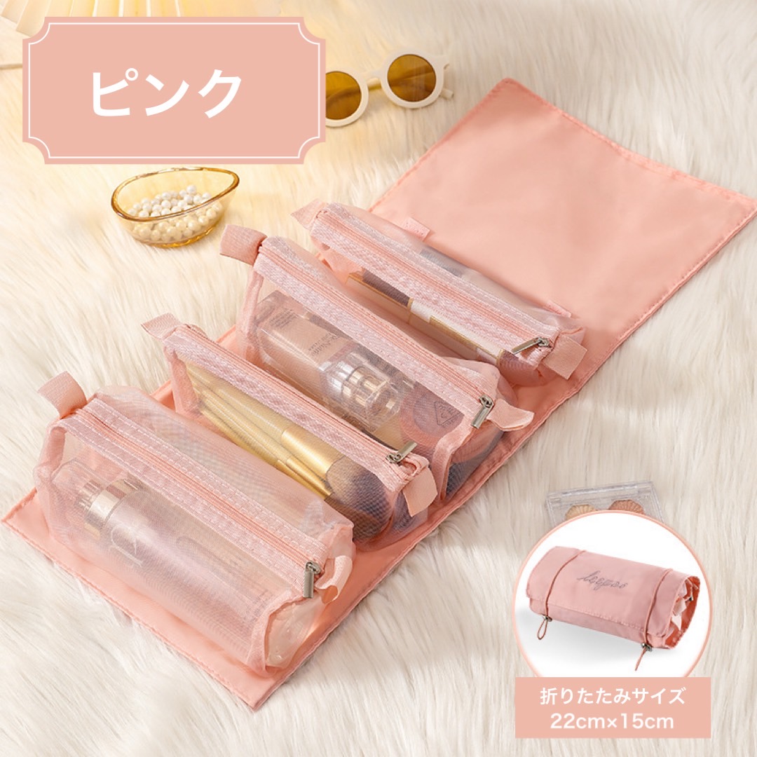 吊り下げポーチ メイクポーチ トラベルポーチ 化粧ポーチ 分けて収納 4in1 コスメポーチ 大容量 折り畳み コンパクト マジックテープ ポケット 2WAY 多機能