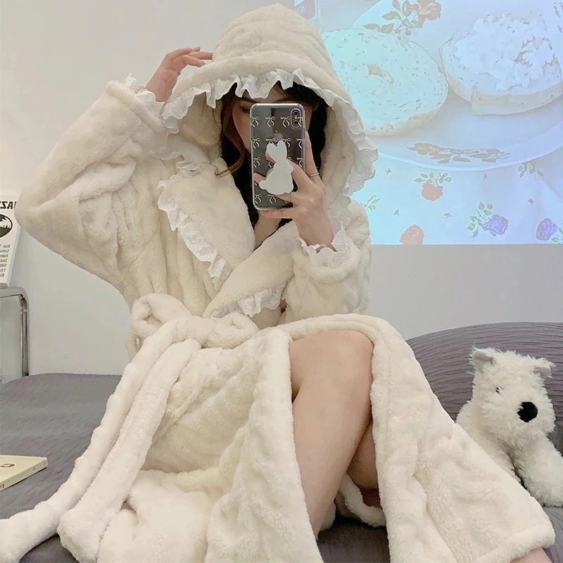 スリーパー厚手連帽バスローブパジャマ保温 パジャマ レディース ガウンサンゴ絨毯スリーパー 部屋着 セットアップ 可愛い モコモコパジャマ ウェアパジャマ