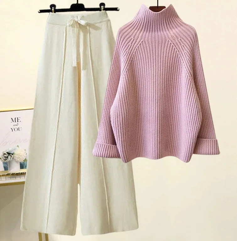 新作 おしゃれ 気質 レディースセットアップ ニット アウター 二点セット 上下セット セーター ニットワイドパンツ セットアップ