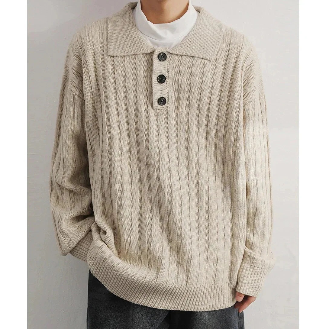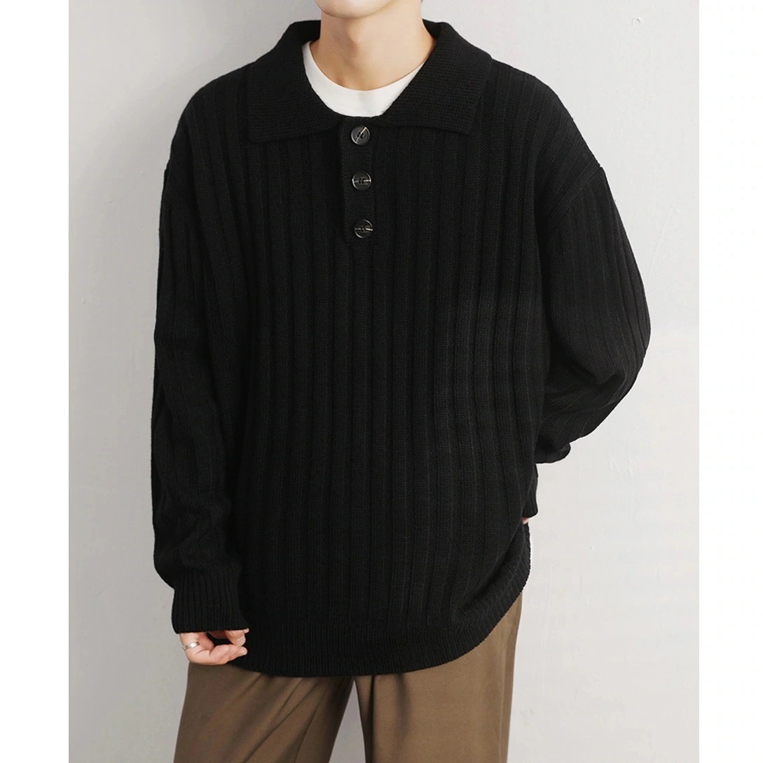 セーター メンズ 和風 ポロカラー レトロ オーバーサイズ インナー 怠惰なスタイル