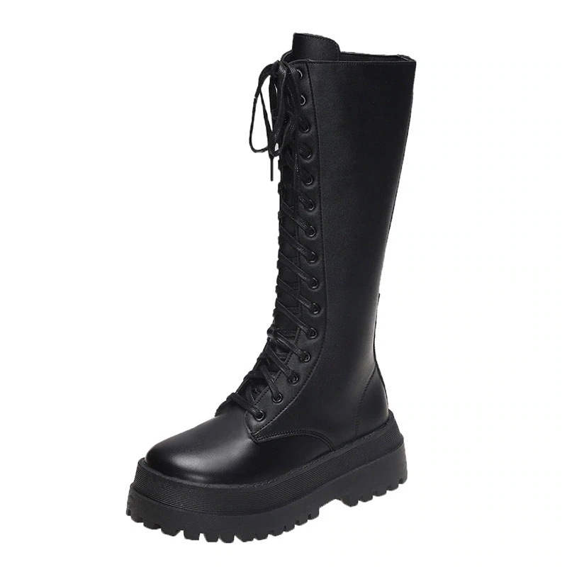 2025 新作 ロングブーツ レディース レースアップ 厚底 サイドジッパー 編み上げ 歩きやすい おしゃれ 防寒