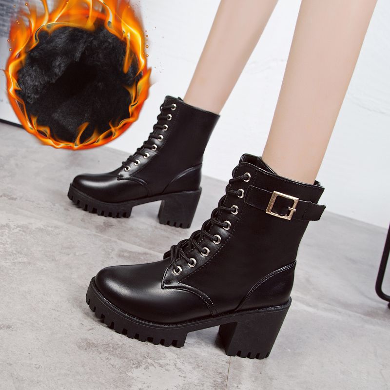 ブーツ 厚底 英国風 ショートブーツ 太ヒール ミドルブーツ ハイヒール 婦人靴 レディース 韓国