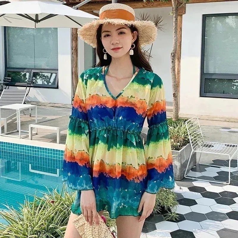 3セット ビーチ 温泉 水着 体型カバー ビキニ 母の日 水陸両用 ラッシュガード 体型カバー 日焼け止め オールインワン チュニック
