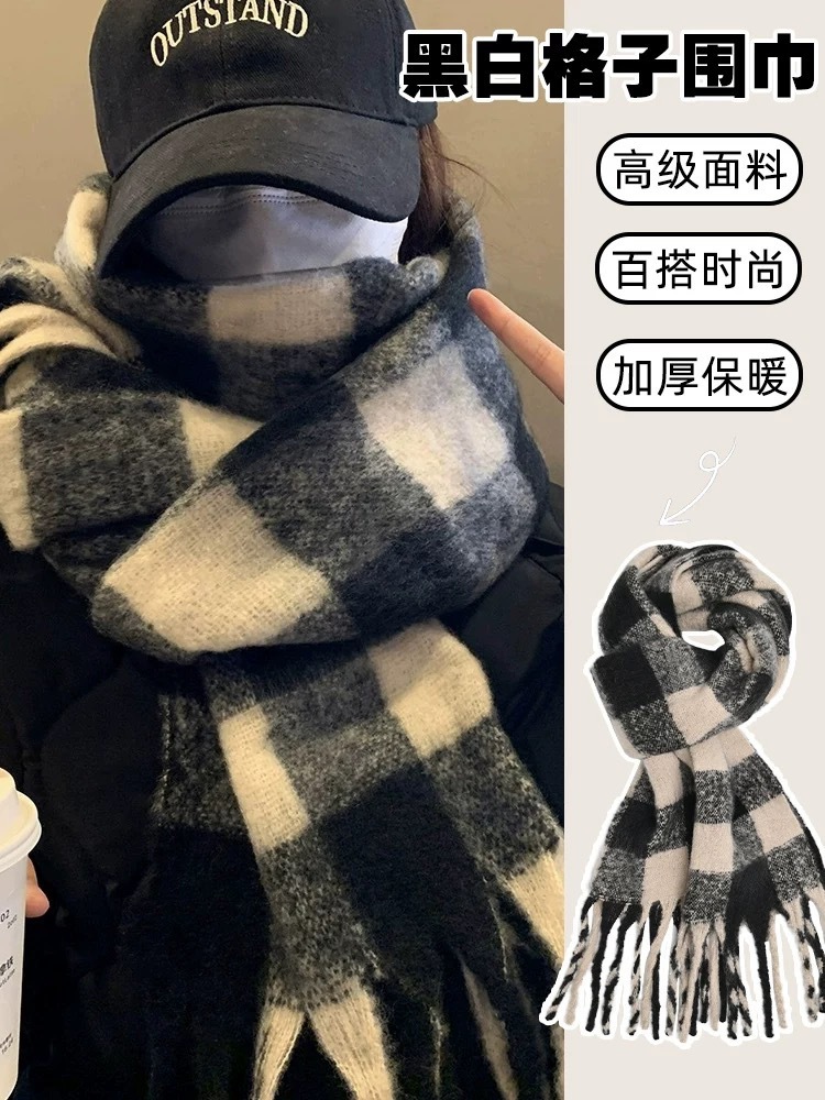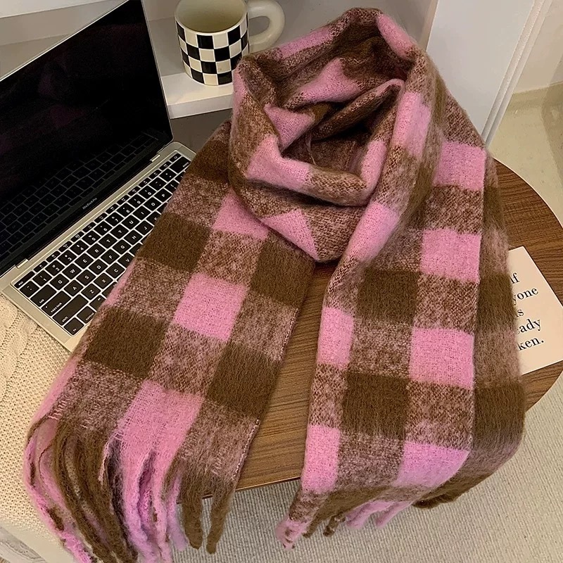 春秋マフラー 大判 ストール厚手 秋冬 レディース マフラーレディース メンズ ロングマフラー ニットまふらー チェッz047