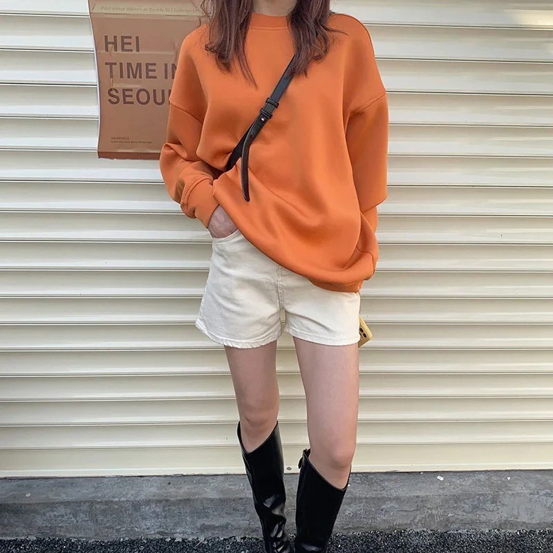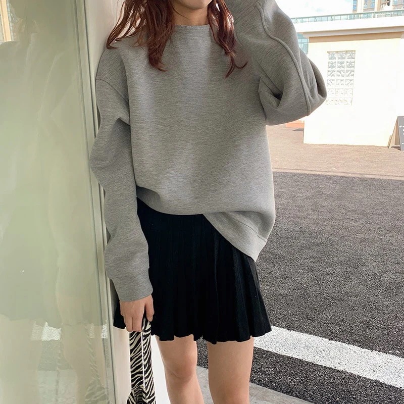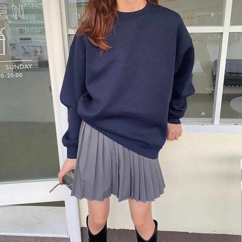 【3日出荷】無地ミニマルオーバーサイズクルーネック BF スタイルプルオーバー ミディアム丈トップス パーカー 春服 レディース母の日