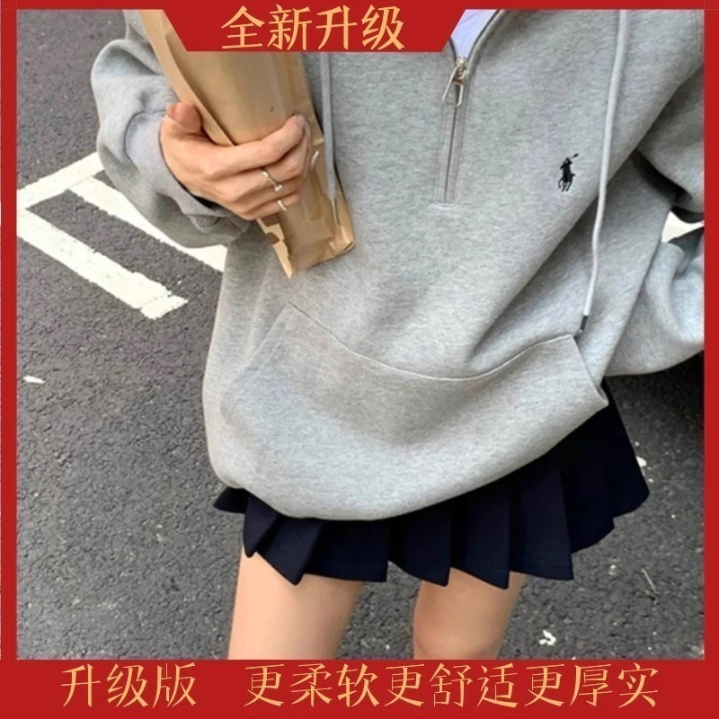 【3日出荷】裏起毛加厚ハーフジッパー刺繍 スポーツルーズオーバーサイズ フード付きトップス パーカー 春服 レディース母の日