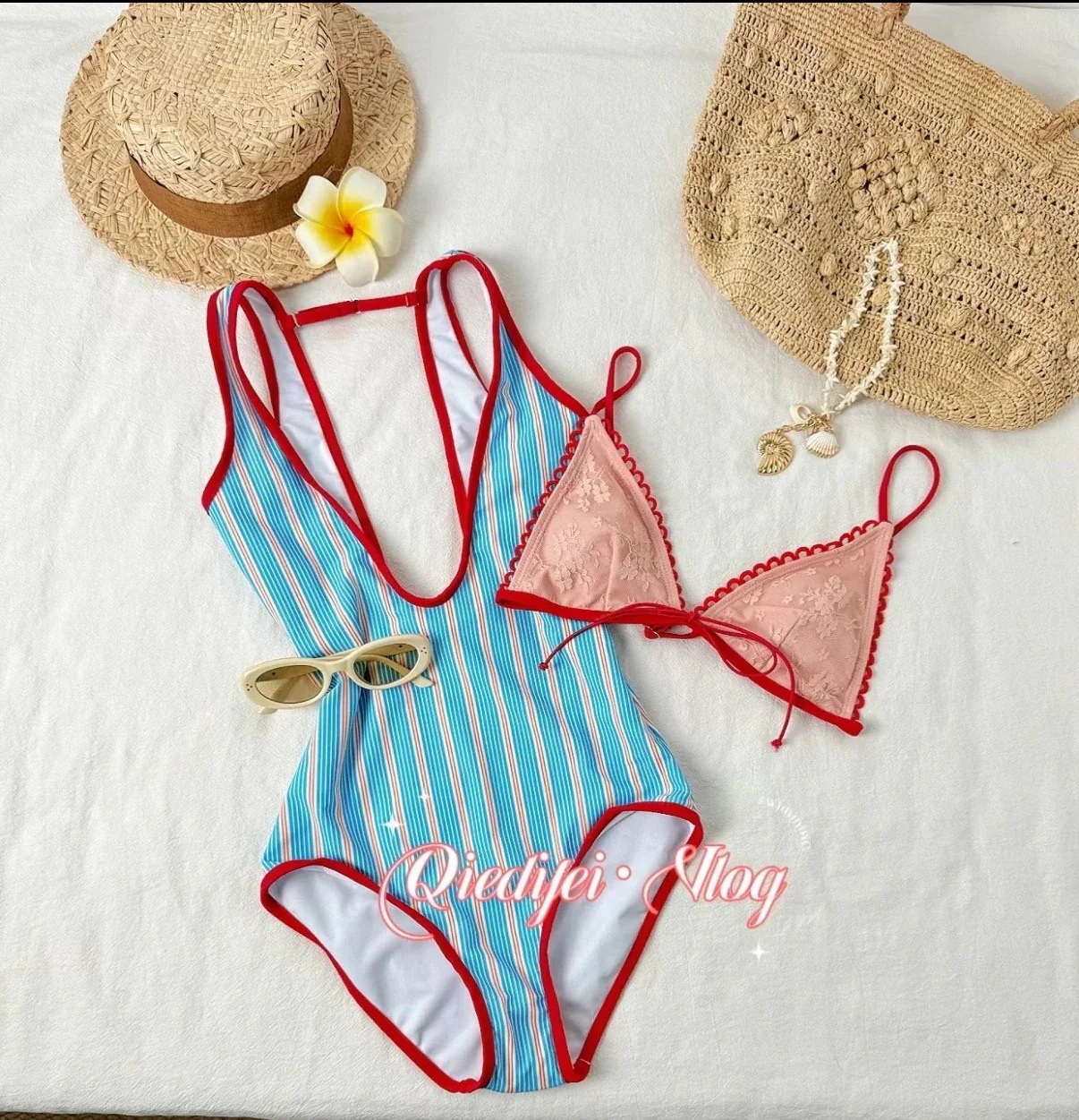 2026新作 水着 レディース ビキニ スイムウェア レディース ブルー&ホワイト ストライプ ディープV ワンピース 水着 ツーピース ホワイトネス 体型カバー セクシー 水着