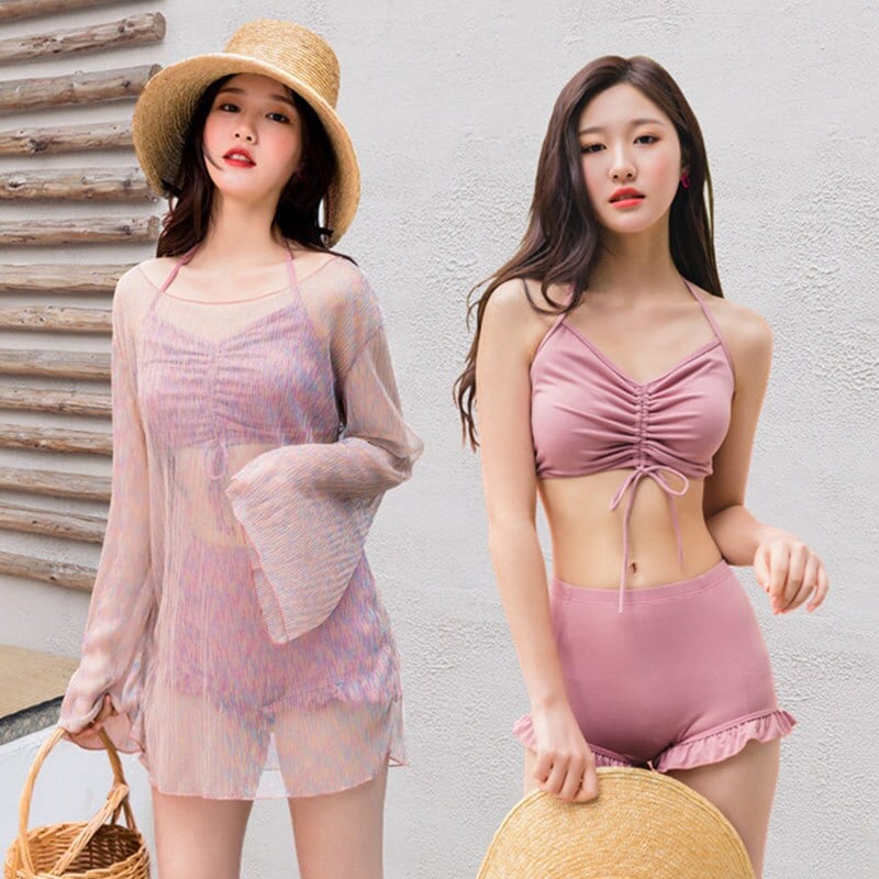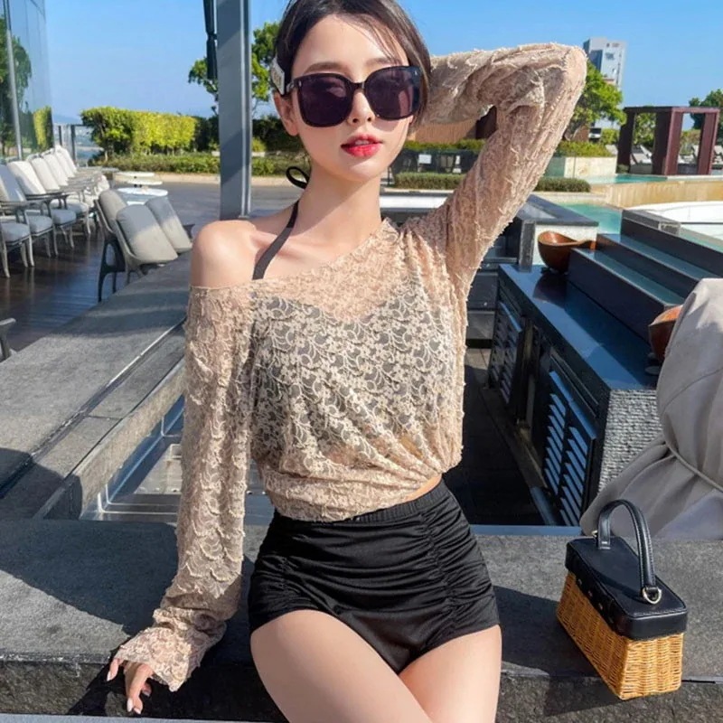 水着 レディースビキニ 3点セットセパレートおしゃれ セクシー体型カバー ママ水着レース 透け オールインワン バックシャン夏 海 ビーチ