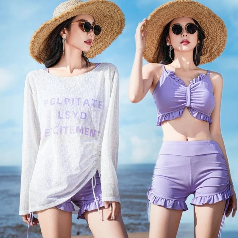 水着 韓国 セパレートビキニ3点セット! 体型カバー羽織り付き温泉・プールOK運動対応 着痩せ効果 水着 レディース 大きいサイズ セットアップ