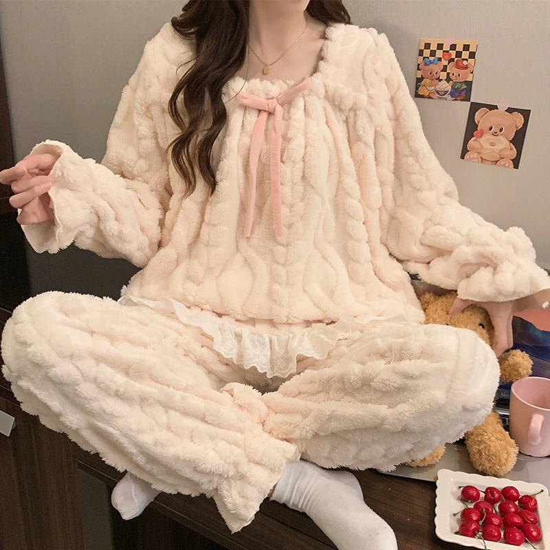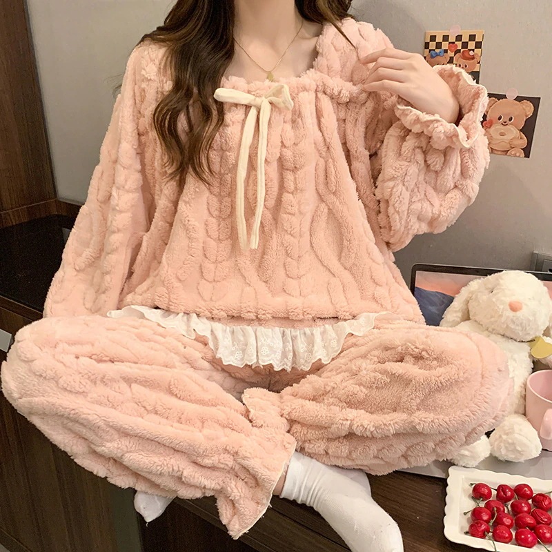 【3日以内に出荷】コーラルフリースパジャマ レディース 冬 フリース入り厚手 少女向け 保温 2025 新モデル 秋冬款 フランネル ホームウェア