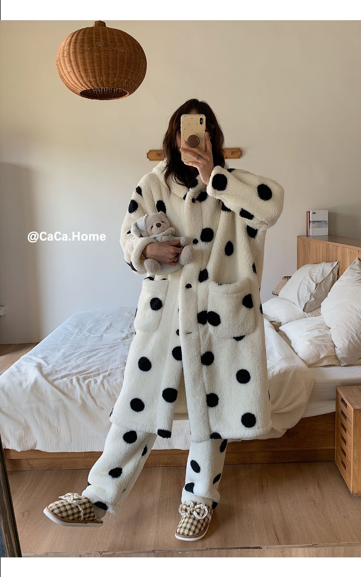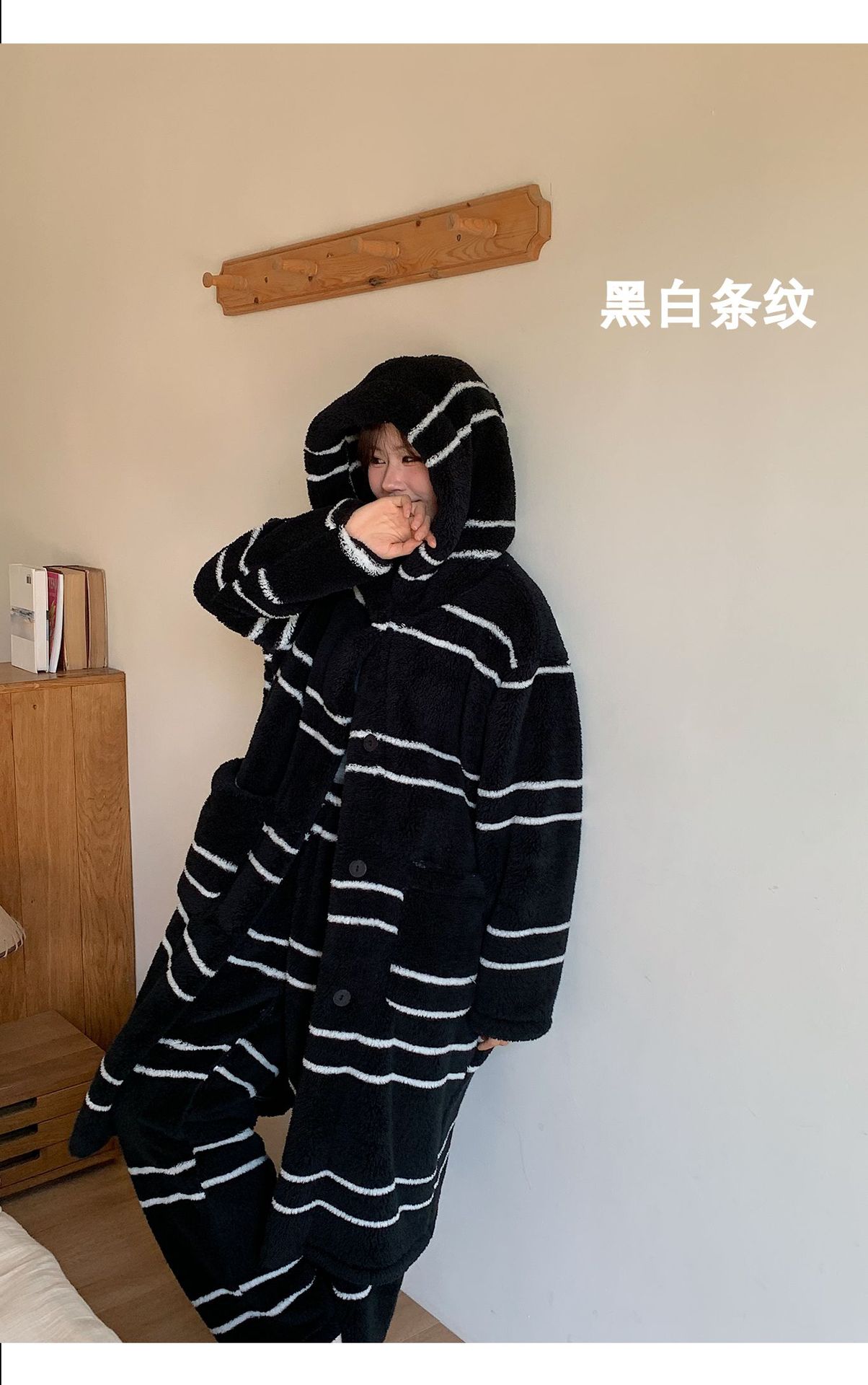 【3日以内に出荷】冬季新作 厚手 コーラルフリース バスローブセット レディース フード付き ロングレングス 保温 パジャマ 外出可 ホームウェア