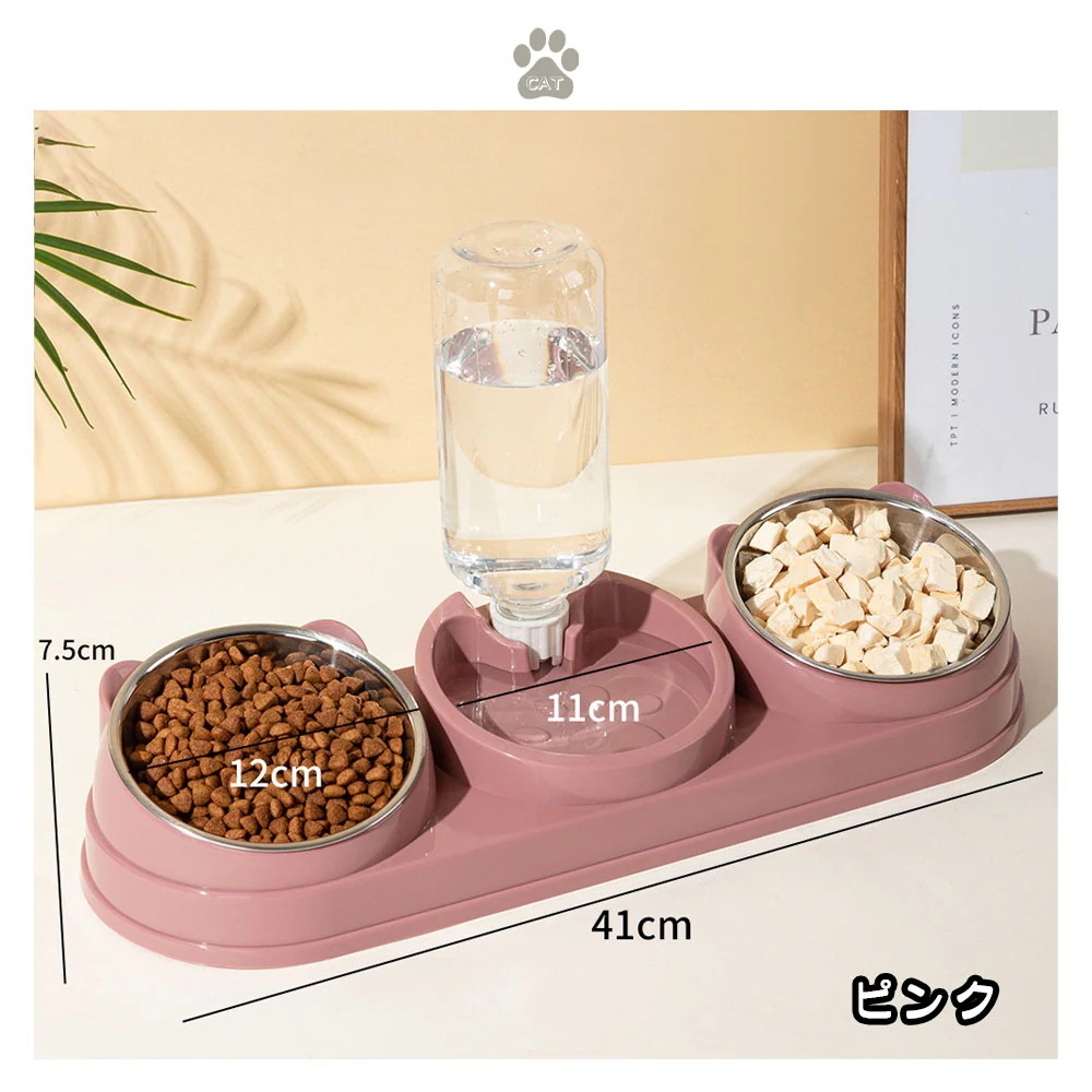 3日で出荷 ぺット用フードボウル 1台3役 ペット食器 ペットボウル 水飲み 餌入れ 自動給水 抗菌 取り外し可能 丸洗いOK 304ステンレス 多頭飼い 猫 犬 ペット用品
