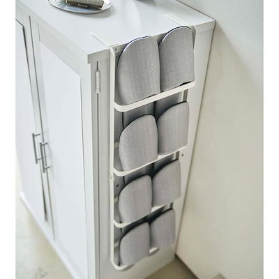 室内収納 シューズラック 玄関収納 スリッパラック 壁掛け式 4段 引っ掛け式スリッパラック フック付き 大容量 安定性 省スペース 取り付け簡単 穴開け不要 省ス